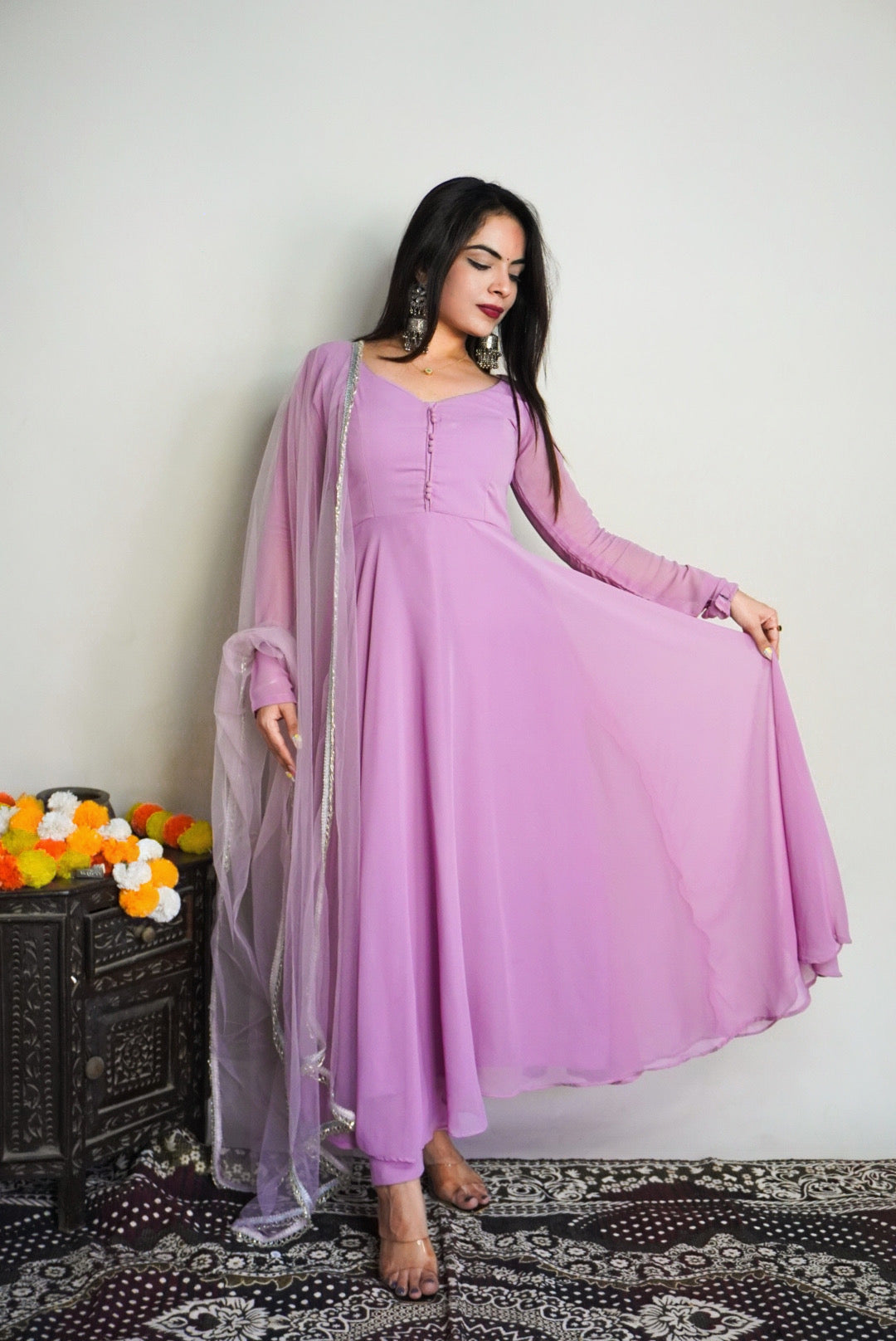 Orange Heavy Pure Soft Fox Georgette with Laheriya Printed Gown