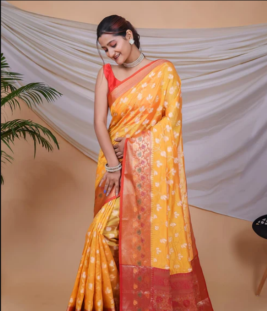 Off White Soft Twill with Banarasi Crush Saree