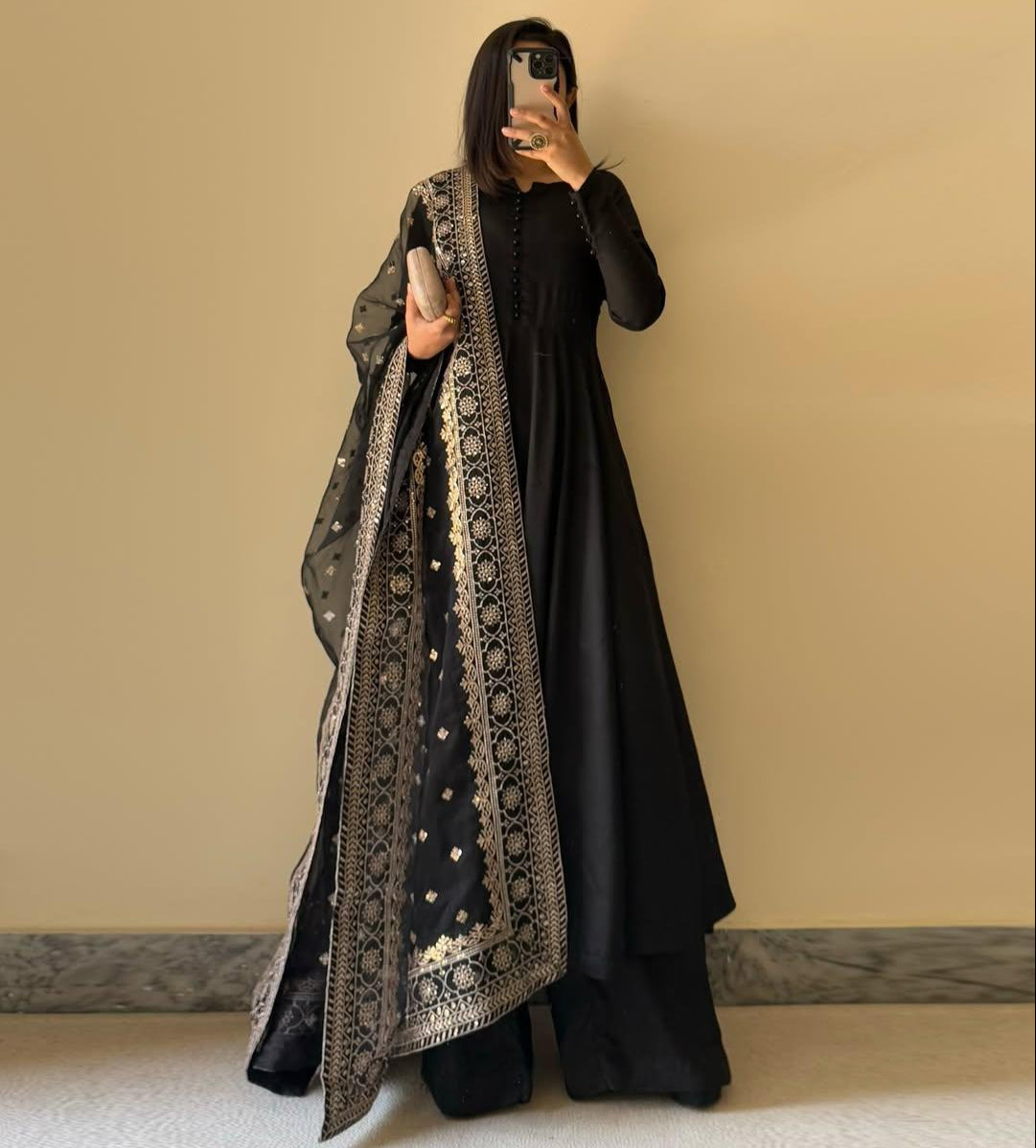Black Fox Georgette Potli Button Work 3pc Kurta Set