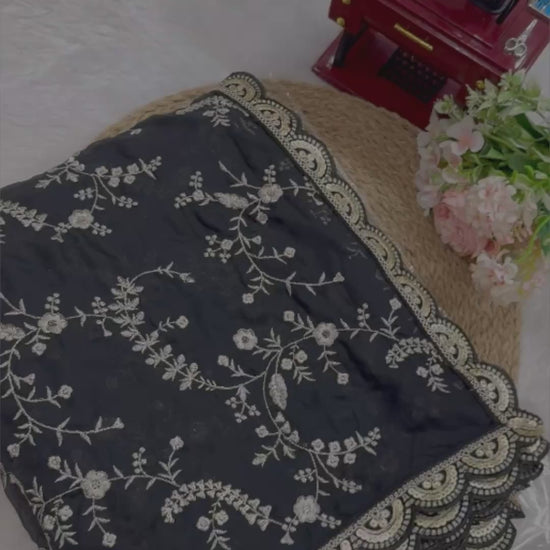 Black Heavy Tibby Silk With Coding Work Saree