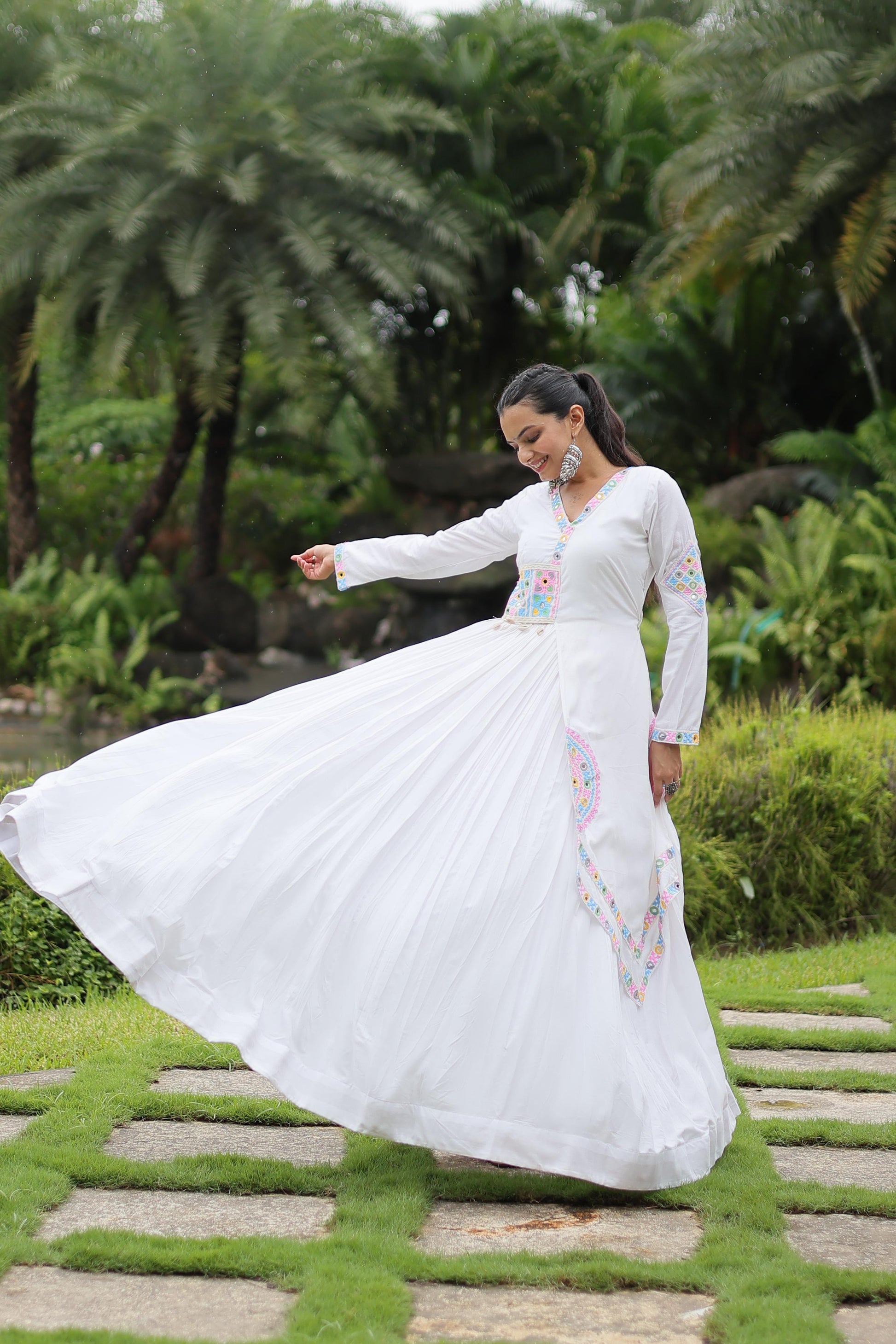 WHATE RAYON WITH KUTCHI GAMTHI LACE NAVARATRI GOWN