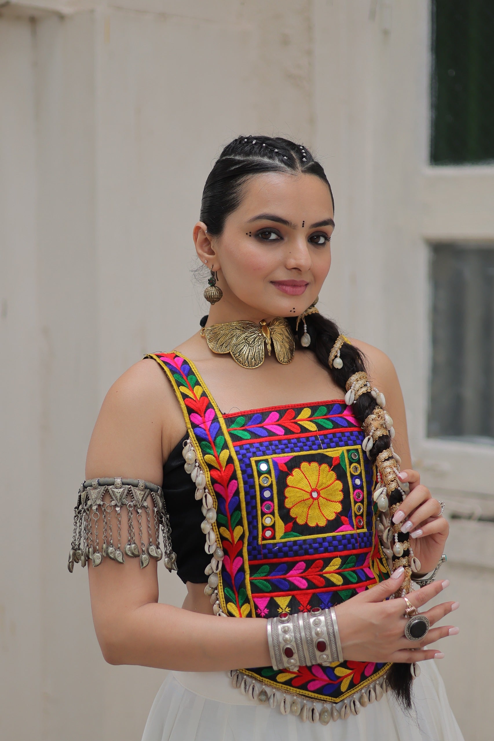 Black Roman Satin with Kutchi Gamthi Embroidery Lehenga Top