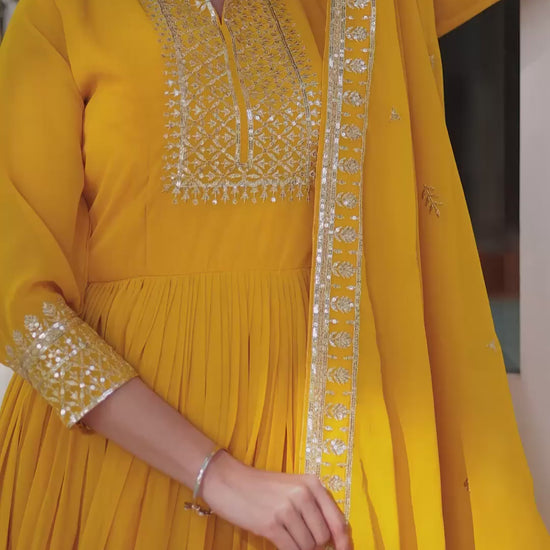 Faux Blooming Georgette Rich Sequins Work Gown With Dupatta Set