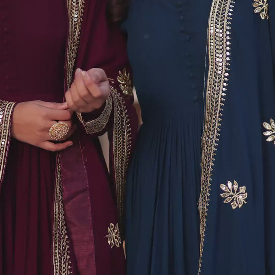 Faux Blooming With Zari & Sequins Work Gown with Dupatta