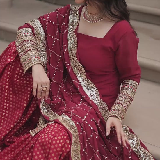 Faux Georgette With Thread Embroidered Work Sharara Suit