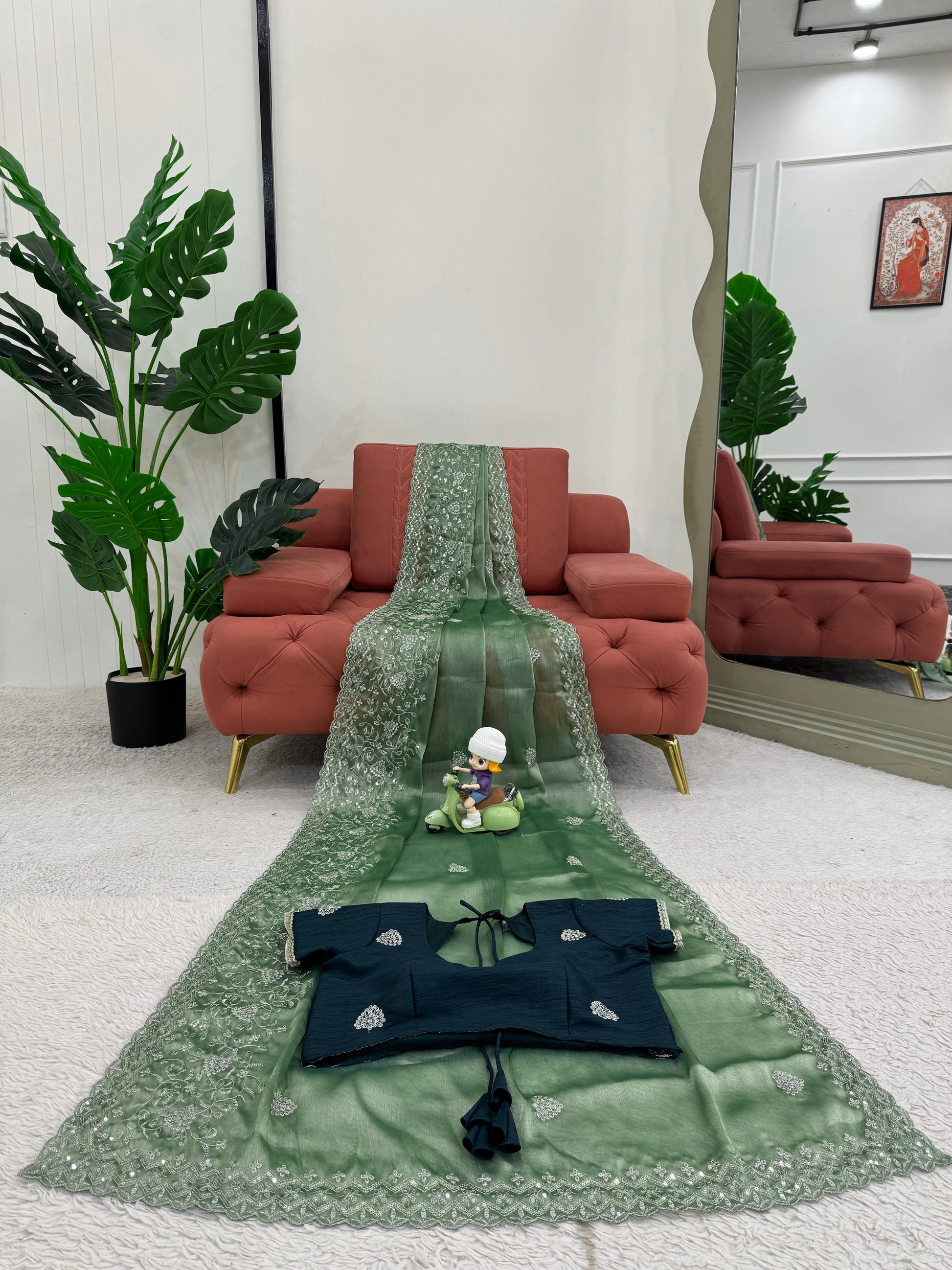 "The saree was even more beautiful in person! The fabric feels luxurious, and the embroidery is perfect. Will definitely shop again. π"