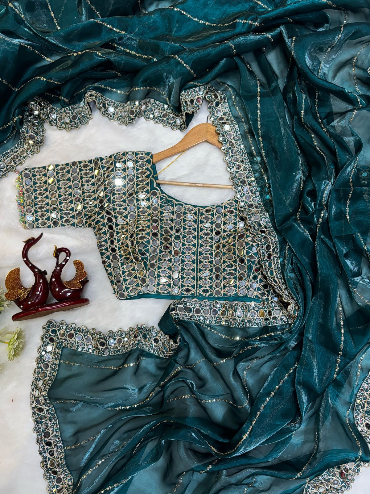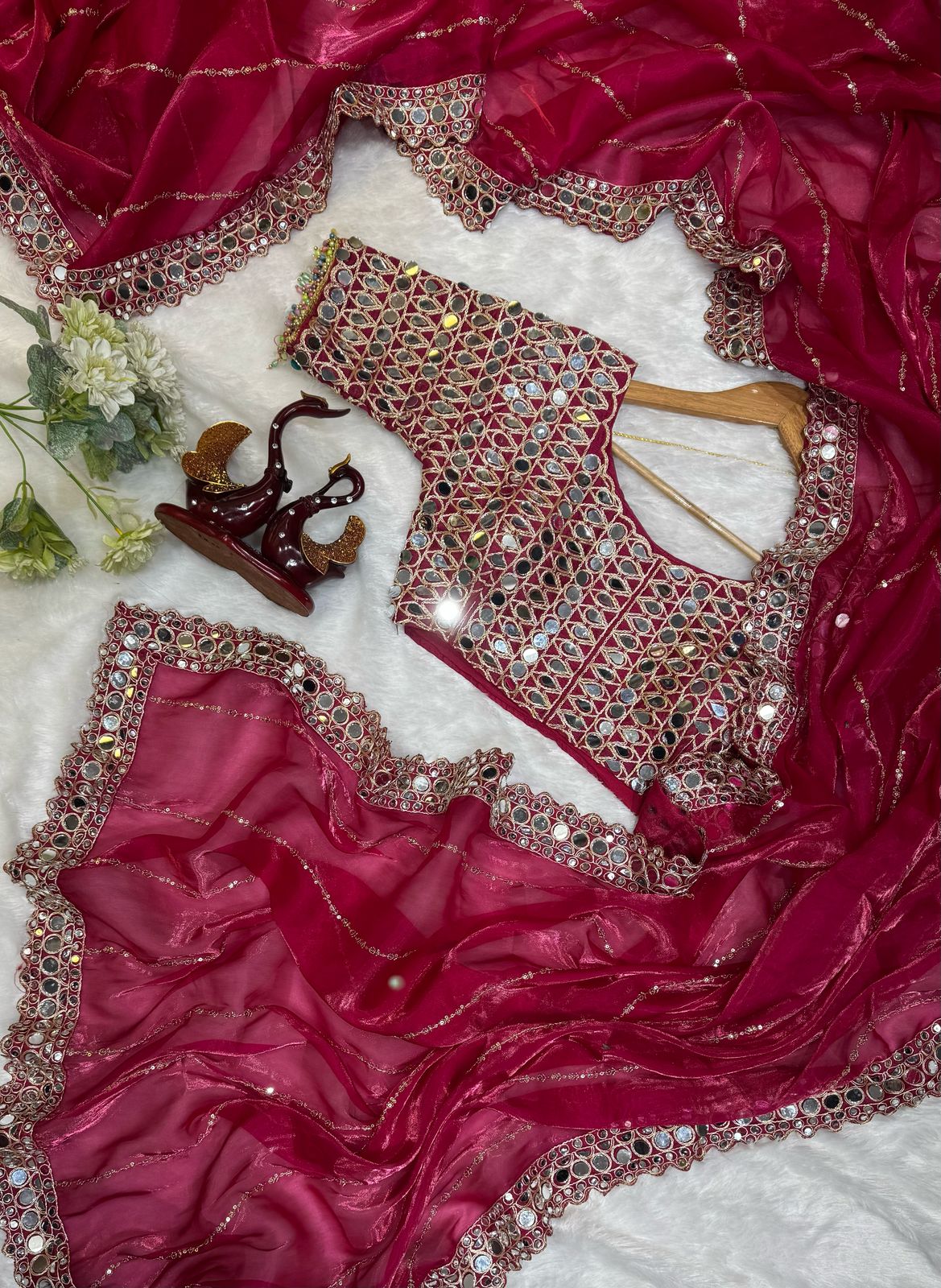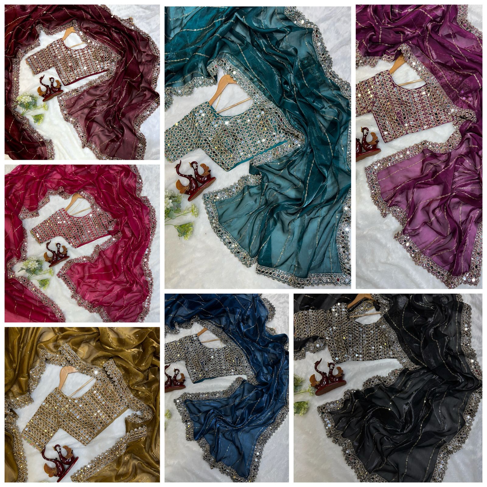 Heavy Jimmi Chu With Original Hand Mirror Work Saree