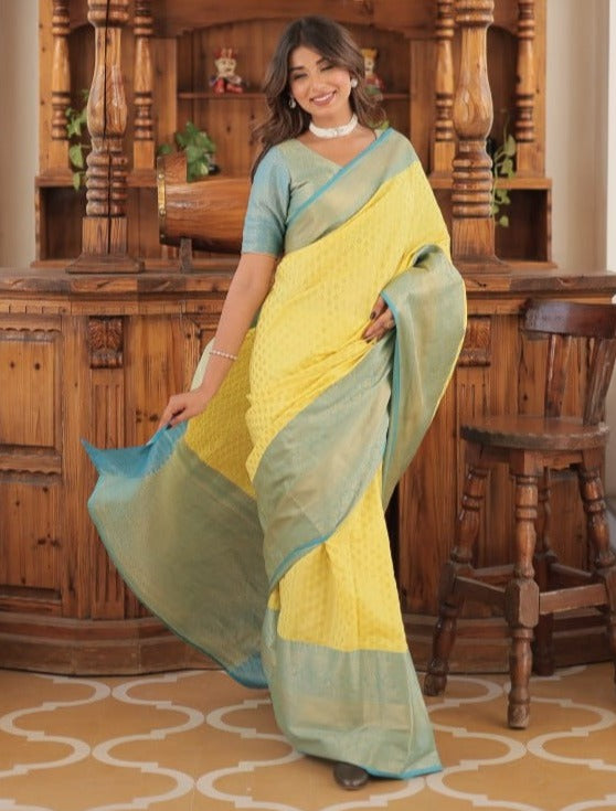 YELLOW COLOR KANJIVARAM SOFT SILK SAREE