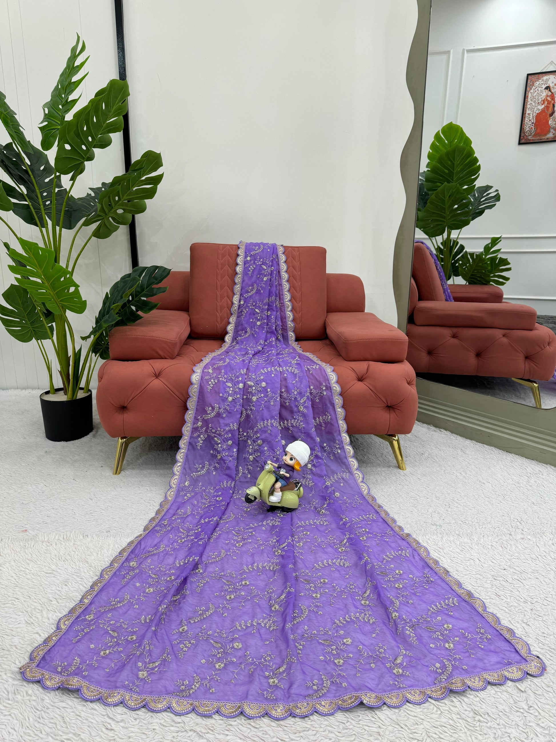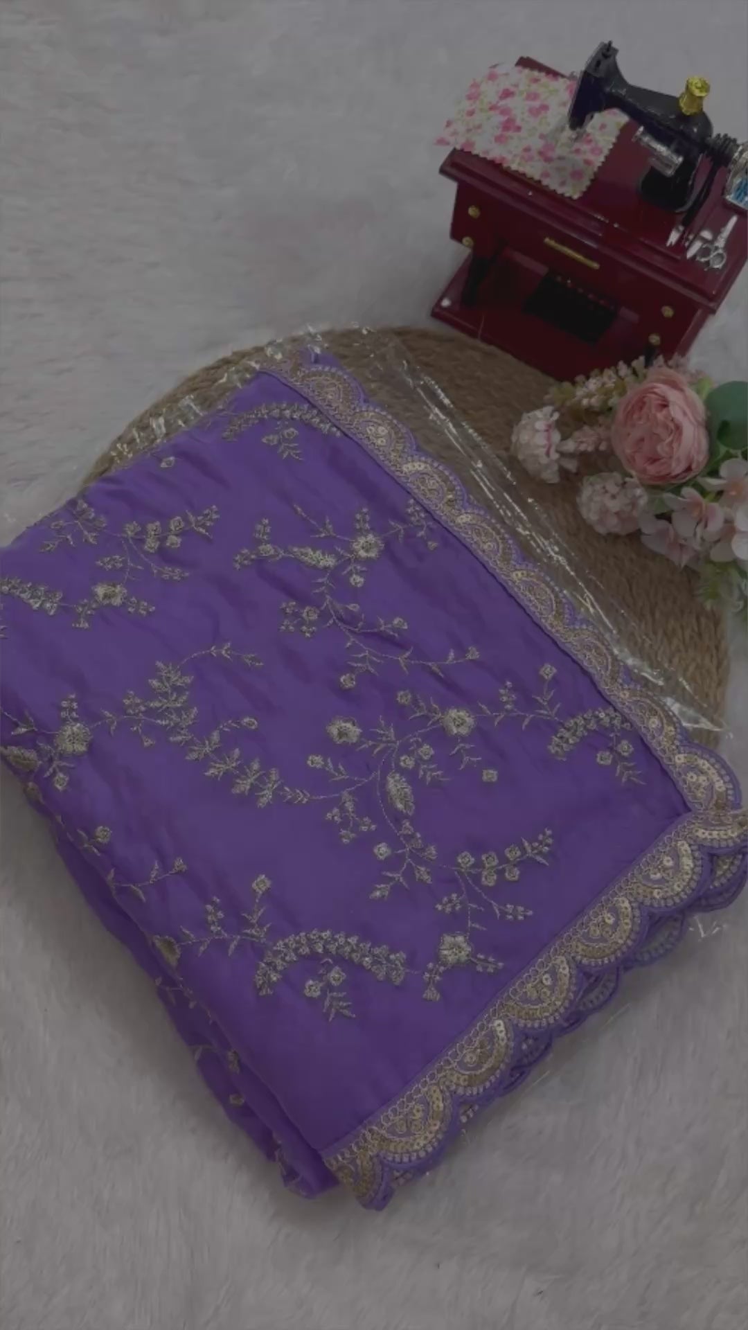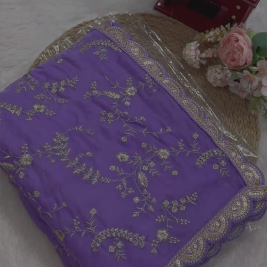 Lavender Heavy Tibby Silk With Coding Work Saree