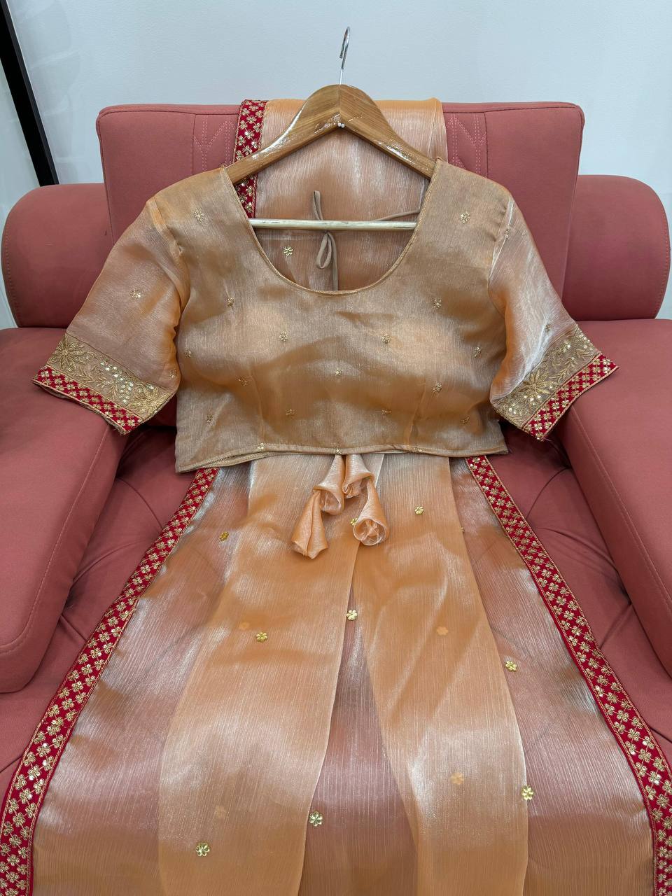 "The SAREE fabric was luxurious and the fit was just perfect. So happy with my purchase! 💖"