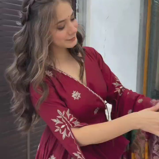 Maroon Color Luxurious Roman Silk 3pc Kurti Set