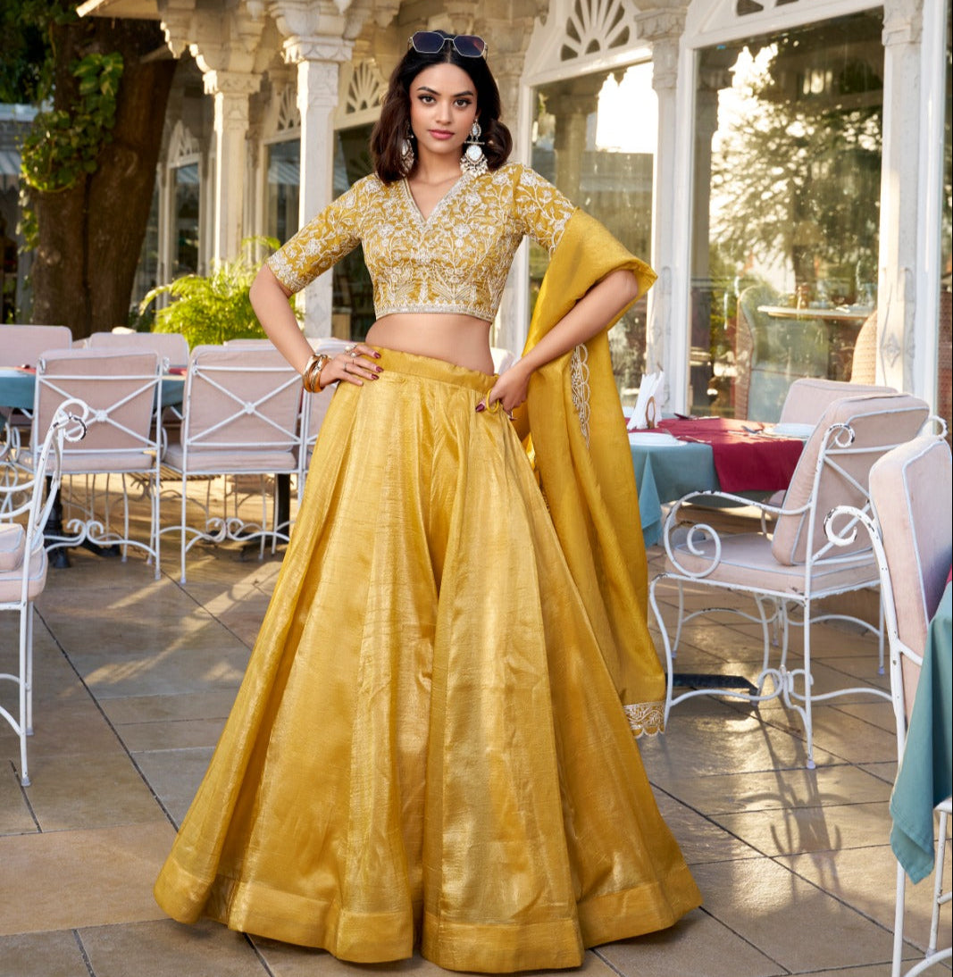 Mustard Yellow color Goldie Sequins & Thread Embroidery Work Lehenga Choli