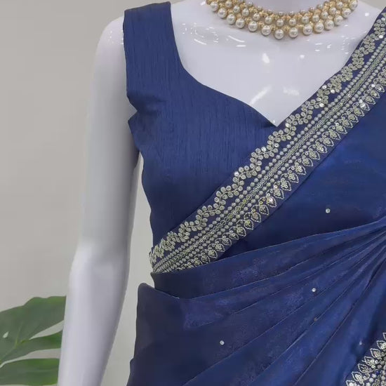 Navy Blue Heavy Organza Silk With LCD Diamonds Saree