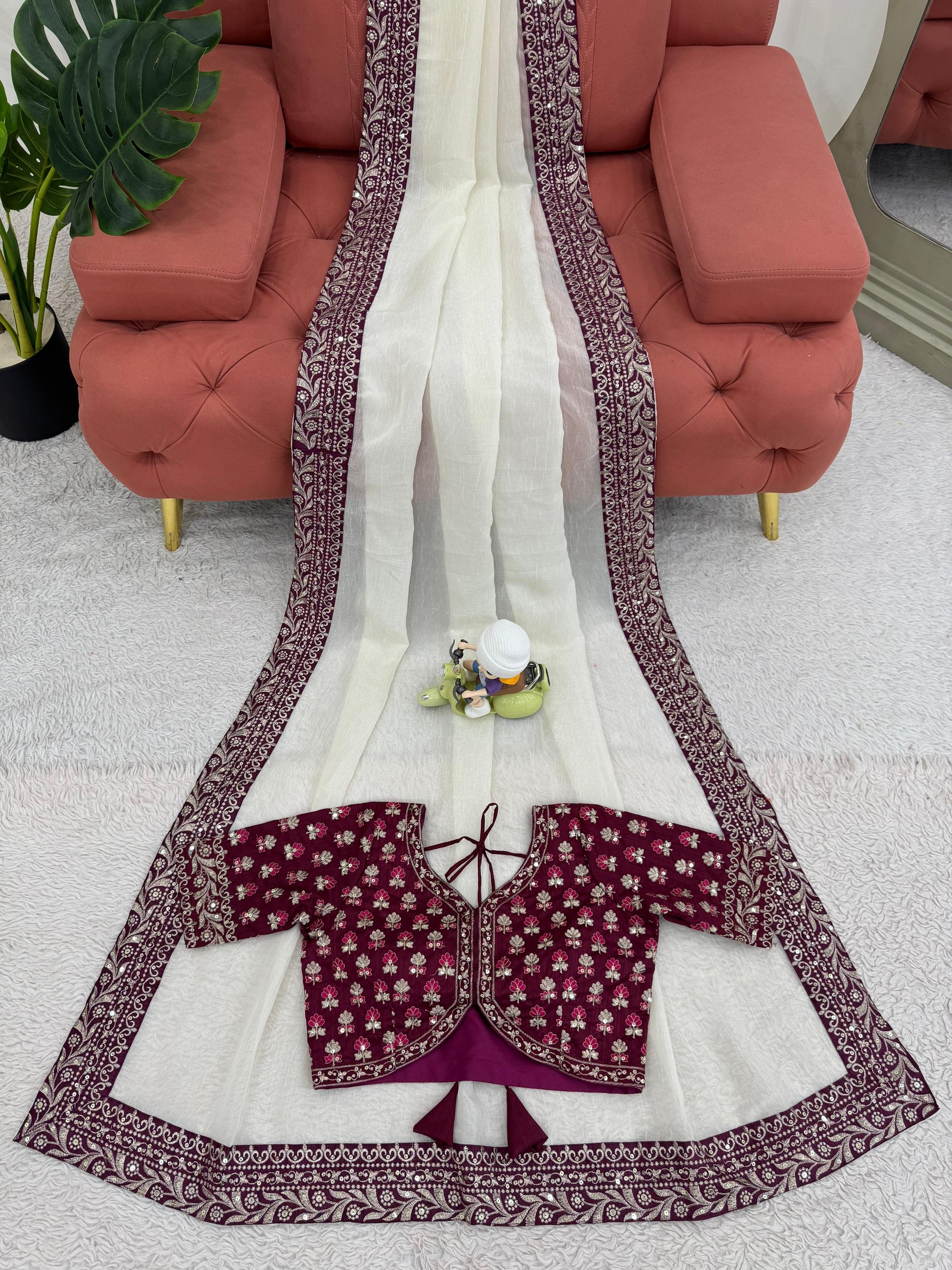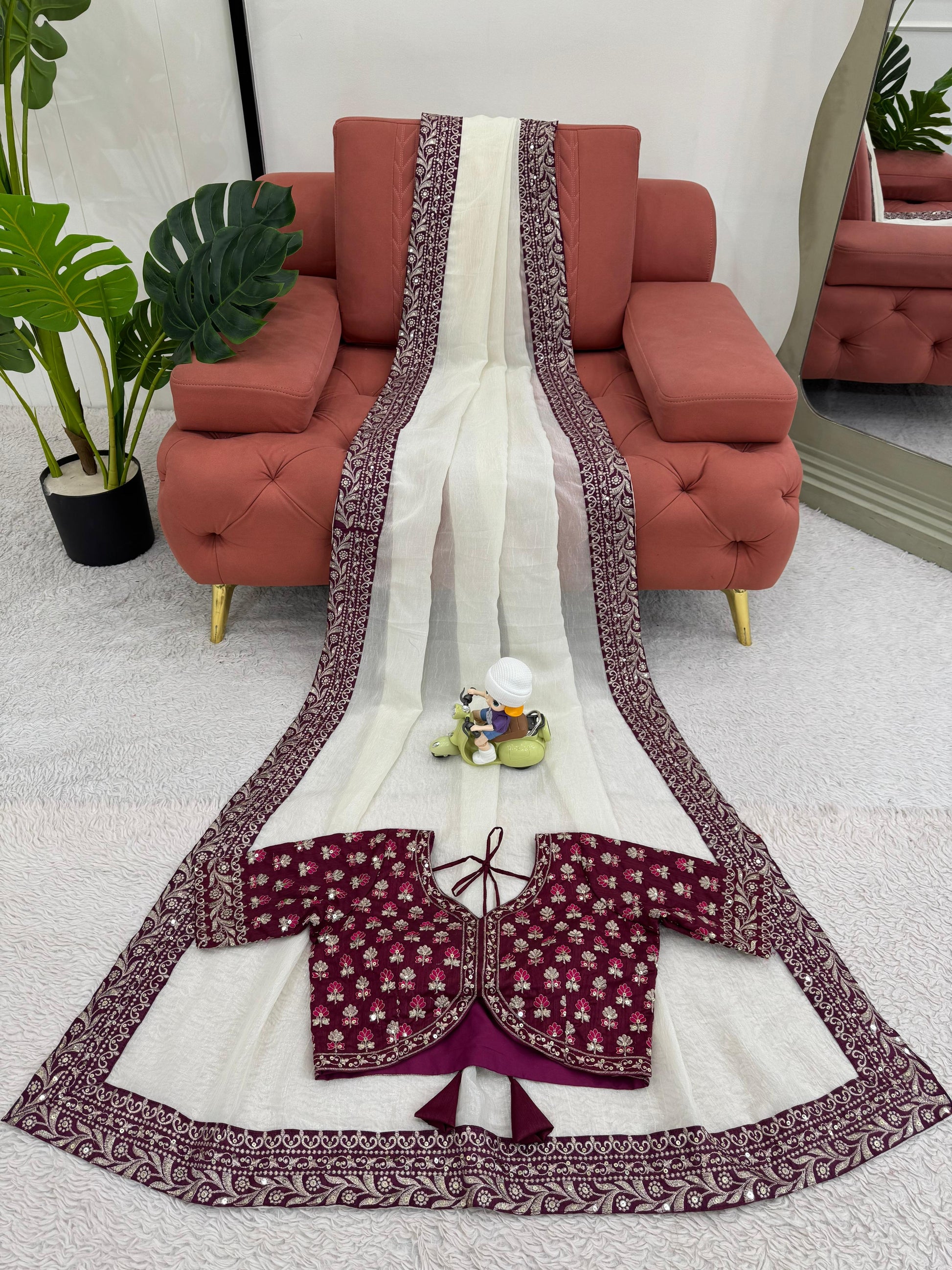 Off White Crunchy Silk Thread with Sequins Work Saree