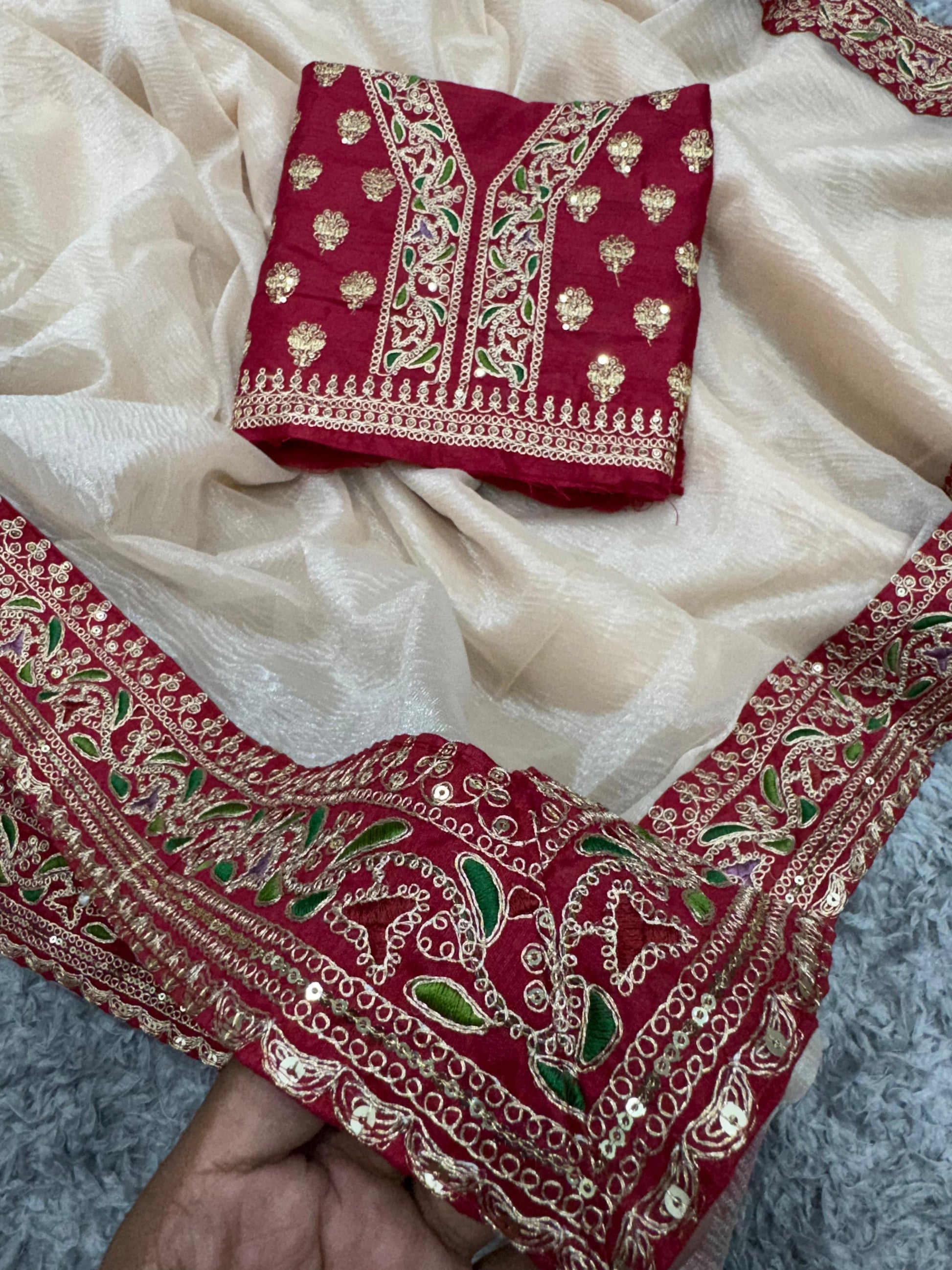 Work: Sequins & Dori Embroidery Work with Lace Border