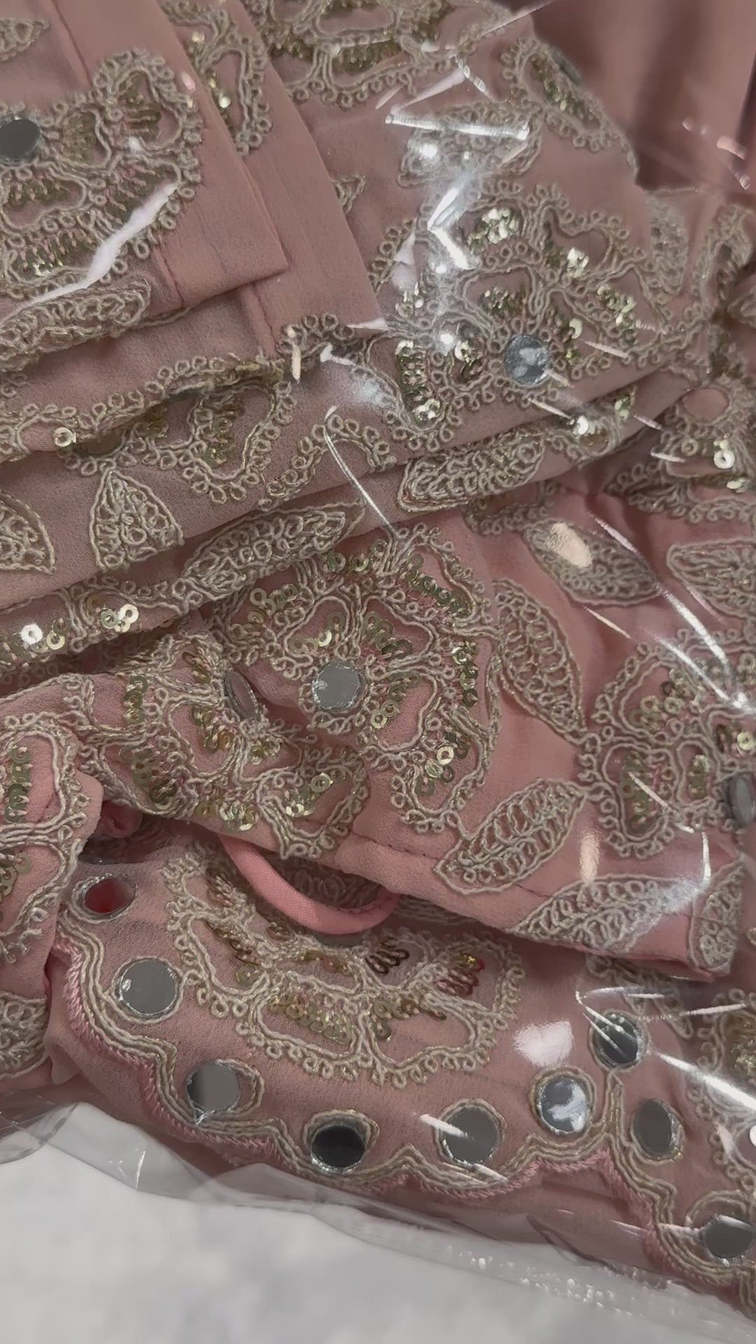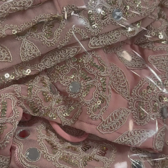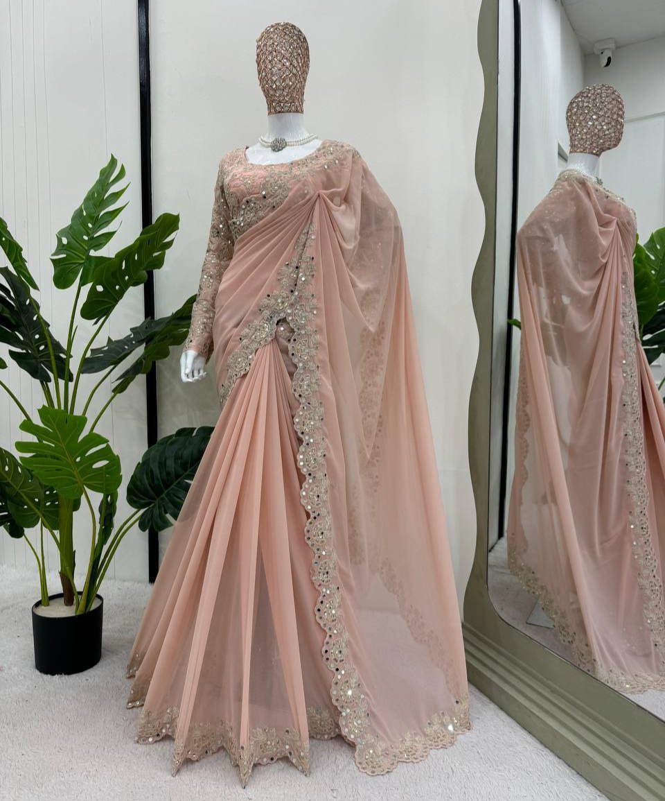 Baby Pink Color Faux Georgette With Real Mirror Work Saree