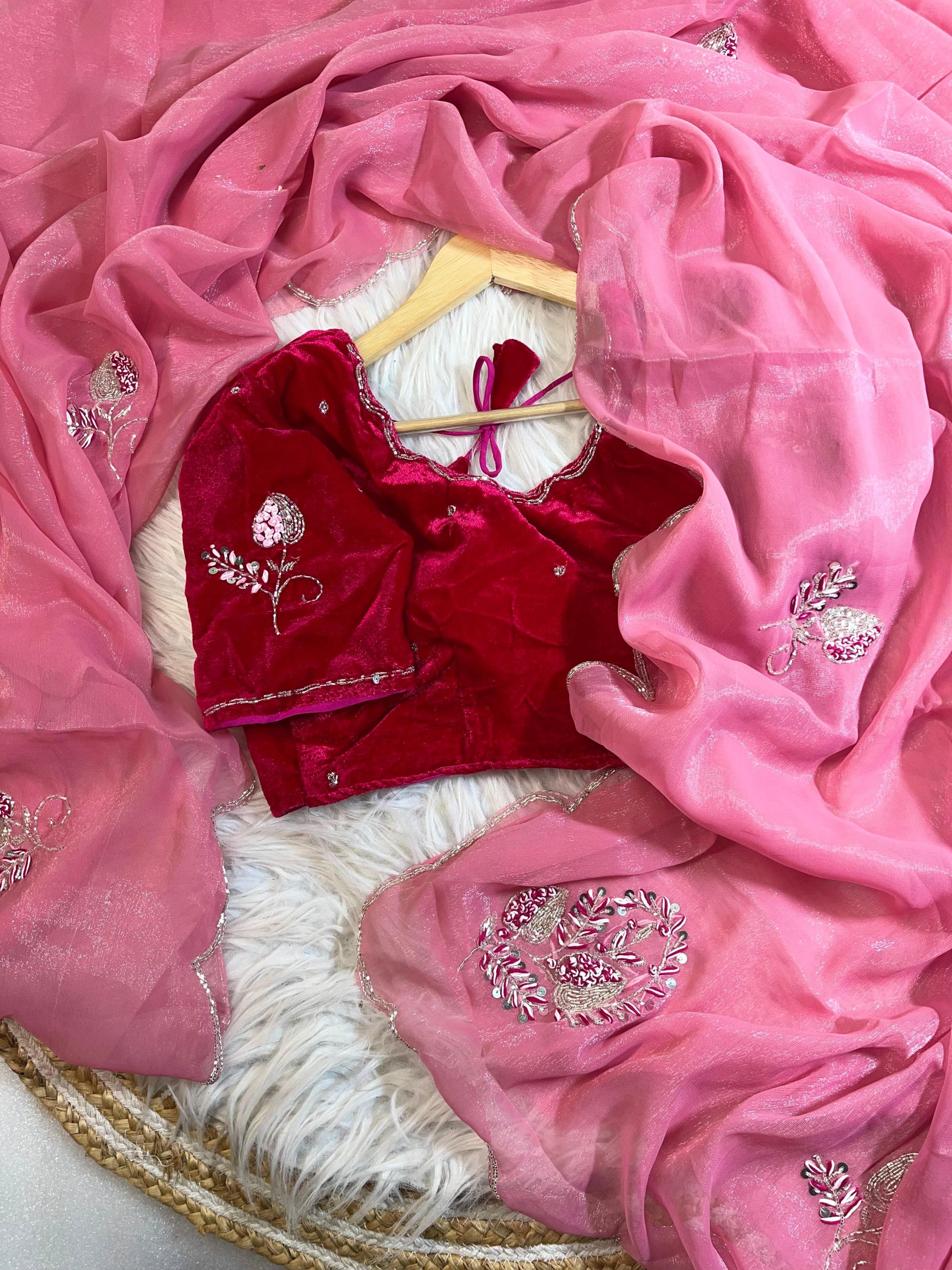 Pure Soft Shimmer Silk With Stiched Blouse Saree