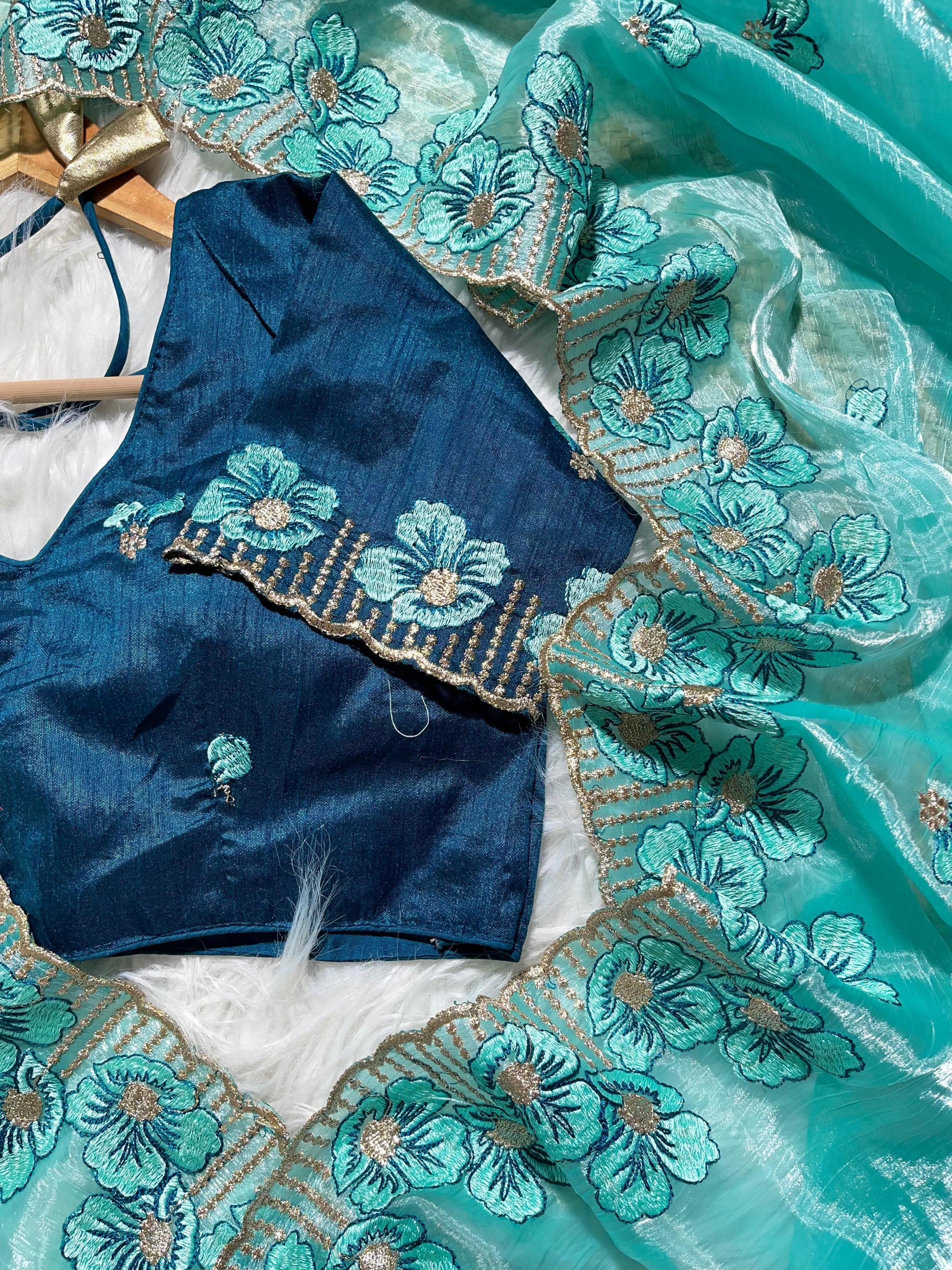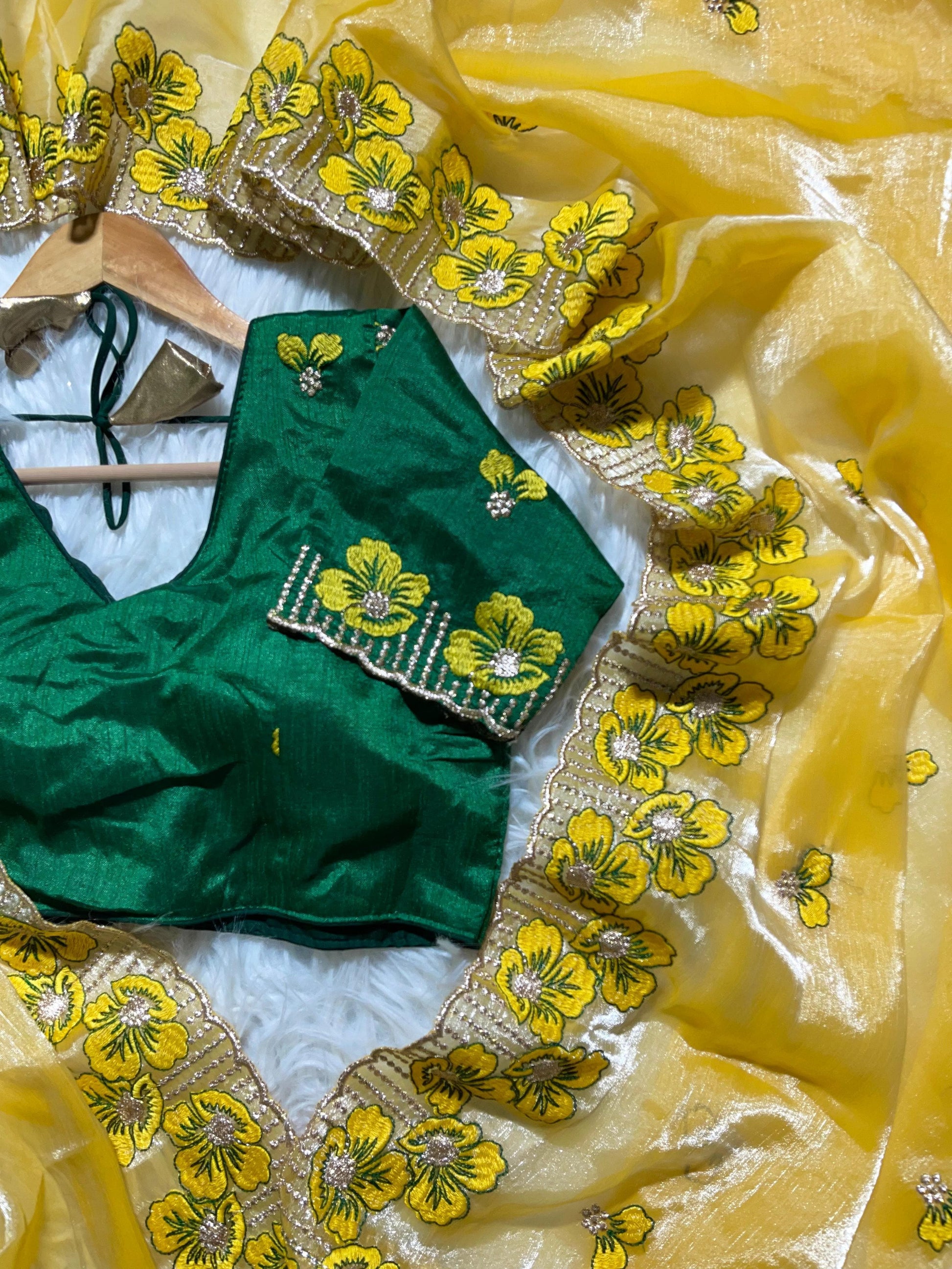 - Work: Embroidery Multi-Thread Heavy Work Border with Buttis All Over Saree