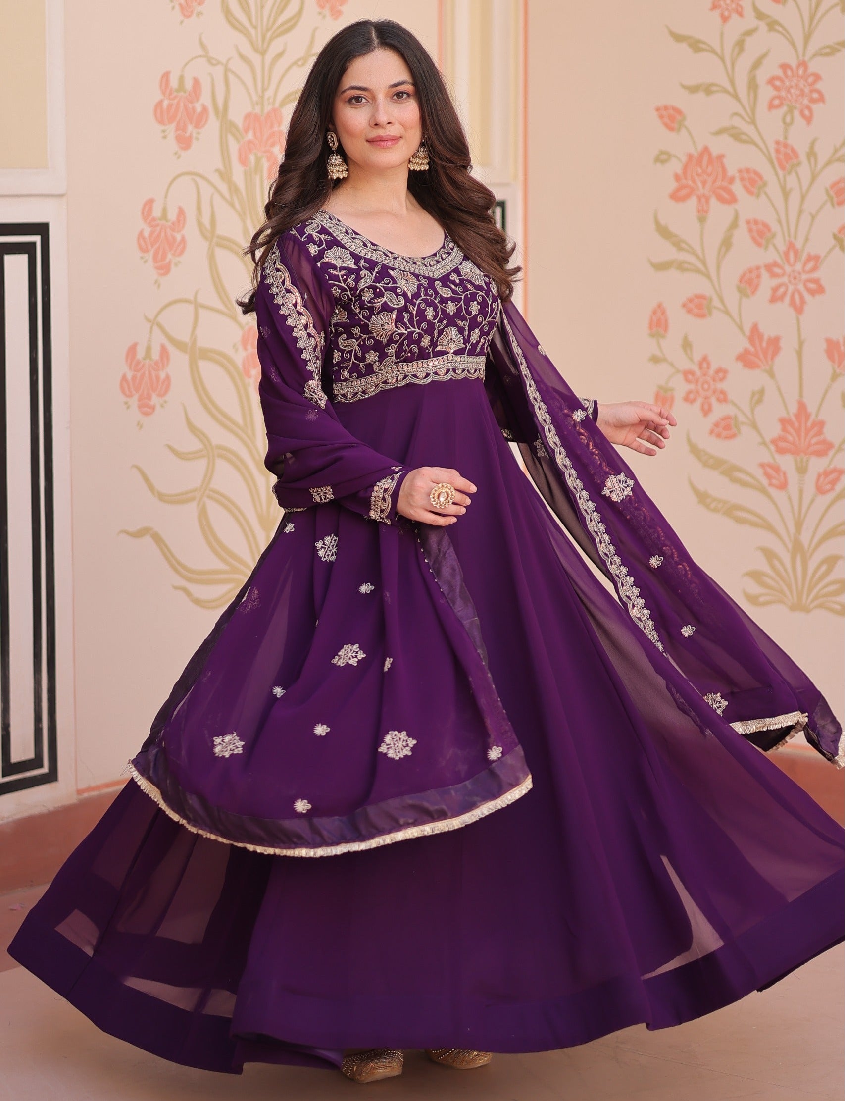 Purple Faux Blooming with Beads Embroidery Work Gown With Dupatta