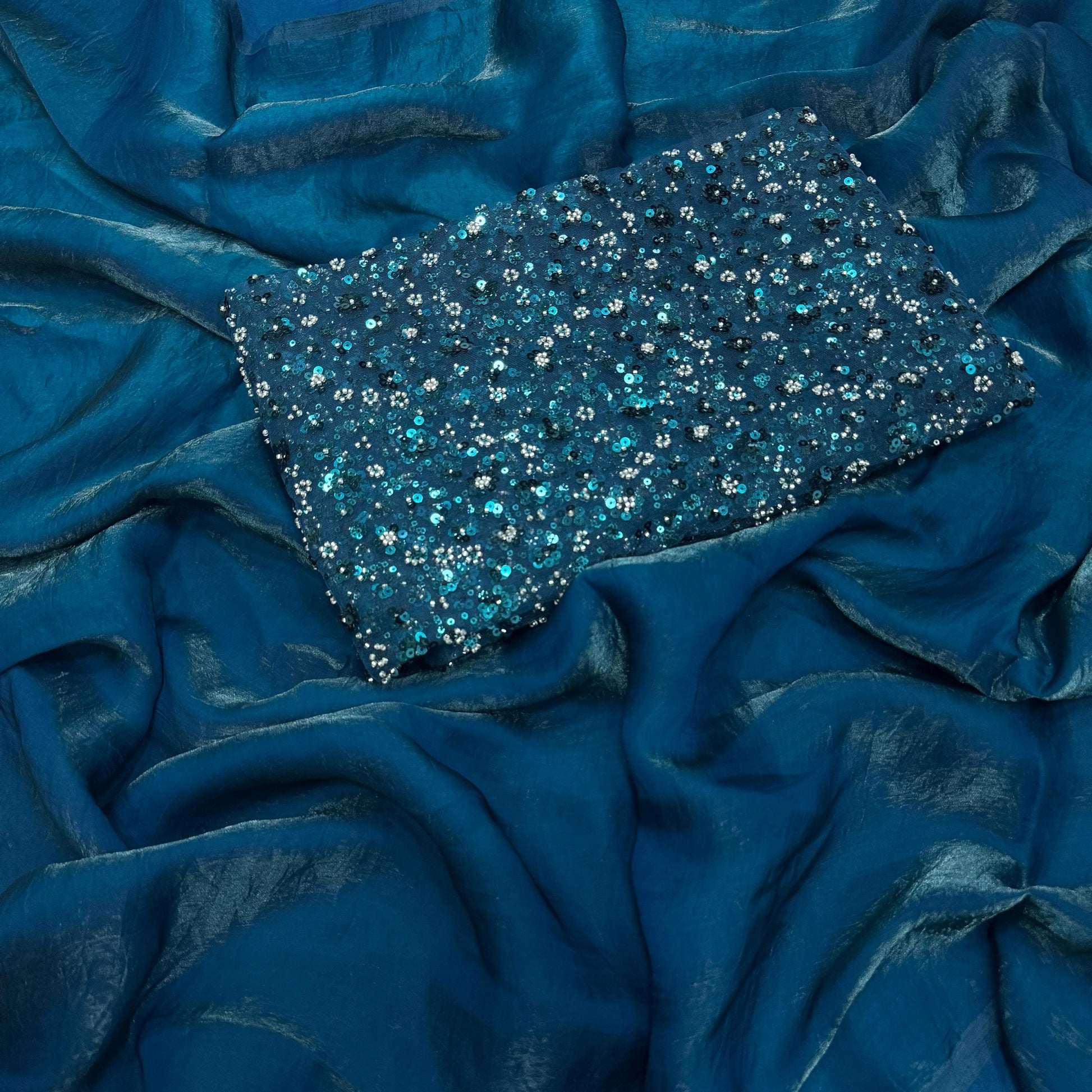 Rama Blue Pure Space Silk Occasion PartyWear Saree