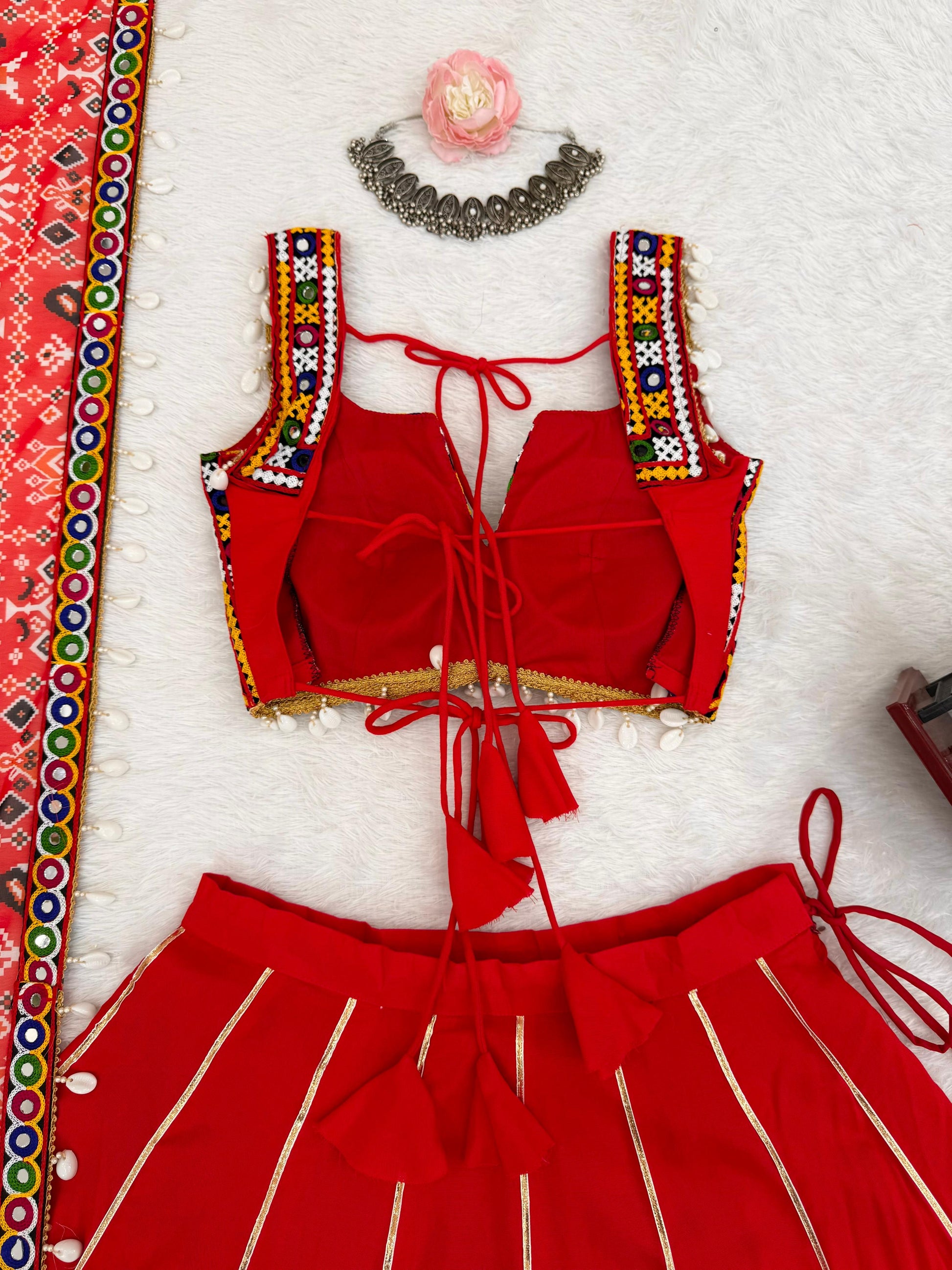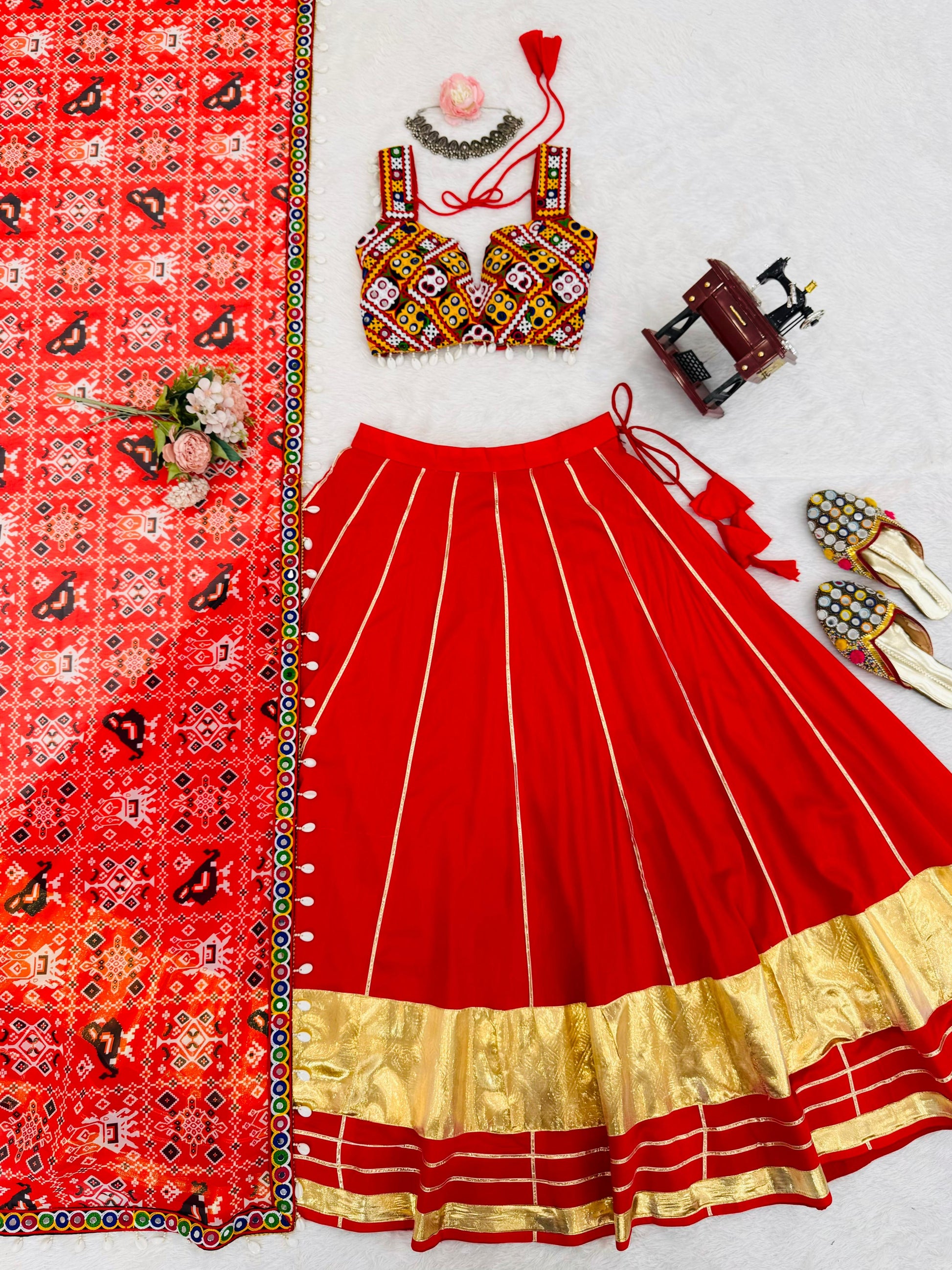Red Heavy Rayon Lagdi Patta Lehenga Choli With Dupatta