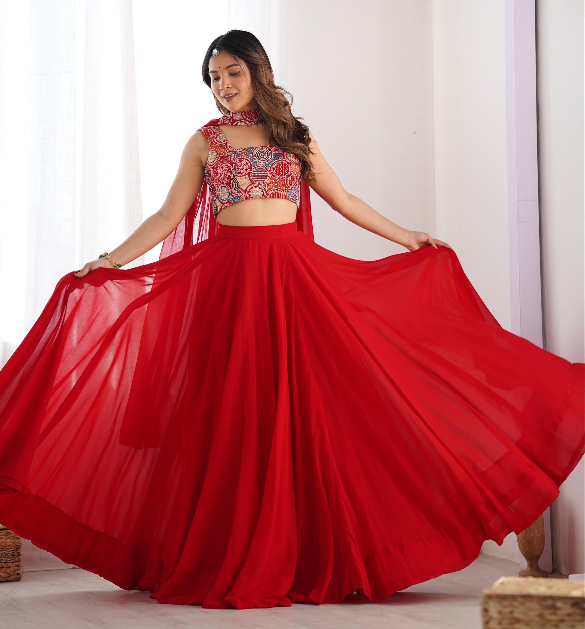 Red Pure Soft Fox Georgette Blooming Lehenga Choli