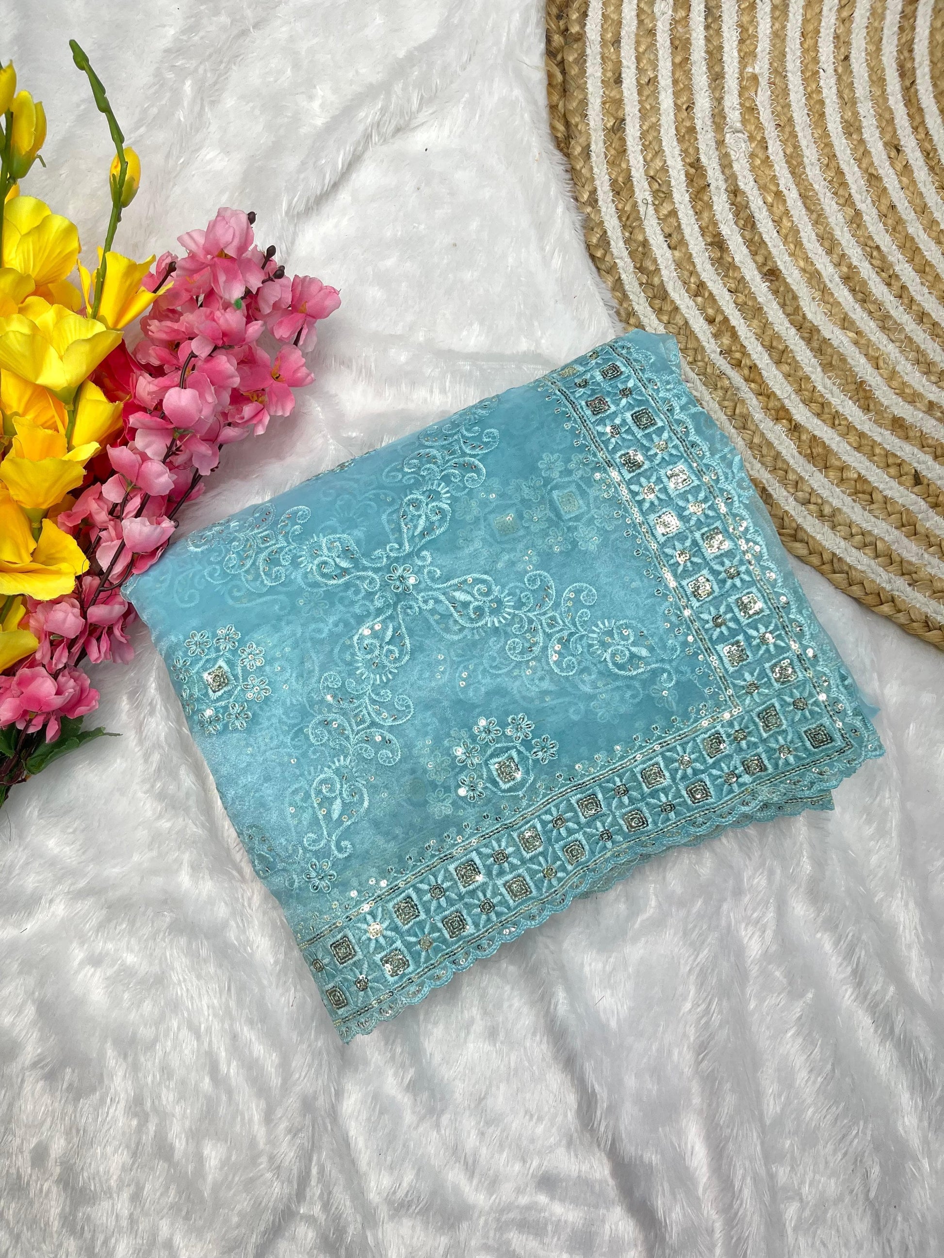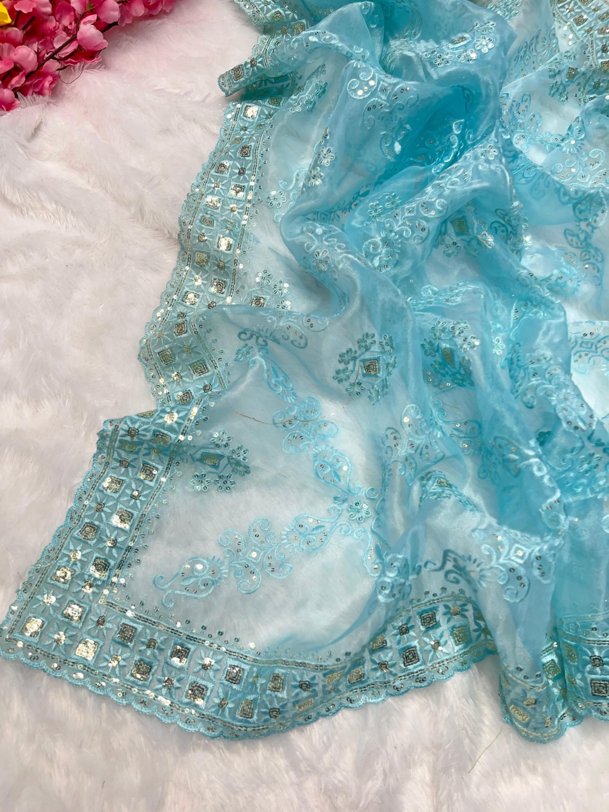 - Border: Heavy 3 mm sequins border with butta detailing