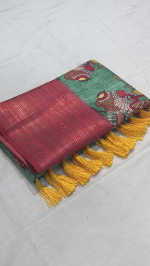 - 3D Kalamkari prints all over the saree for a unique and artistic touch