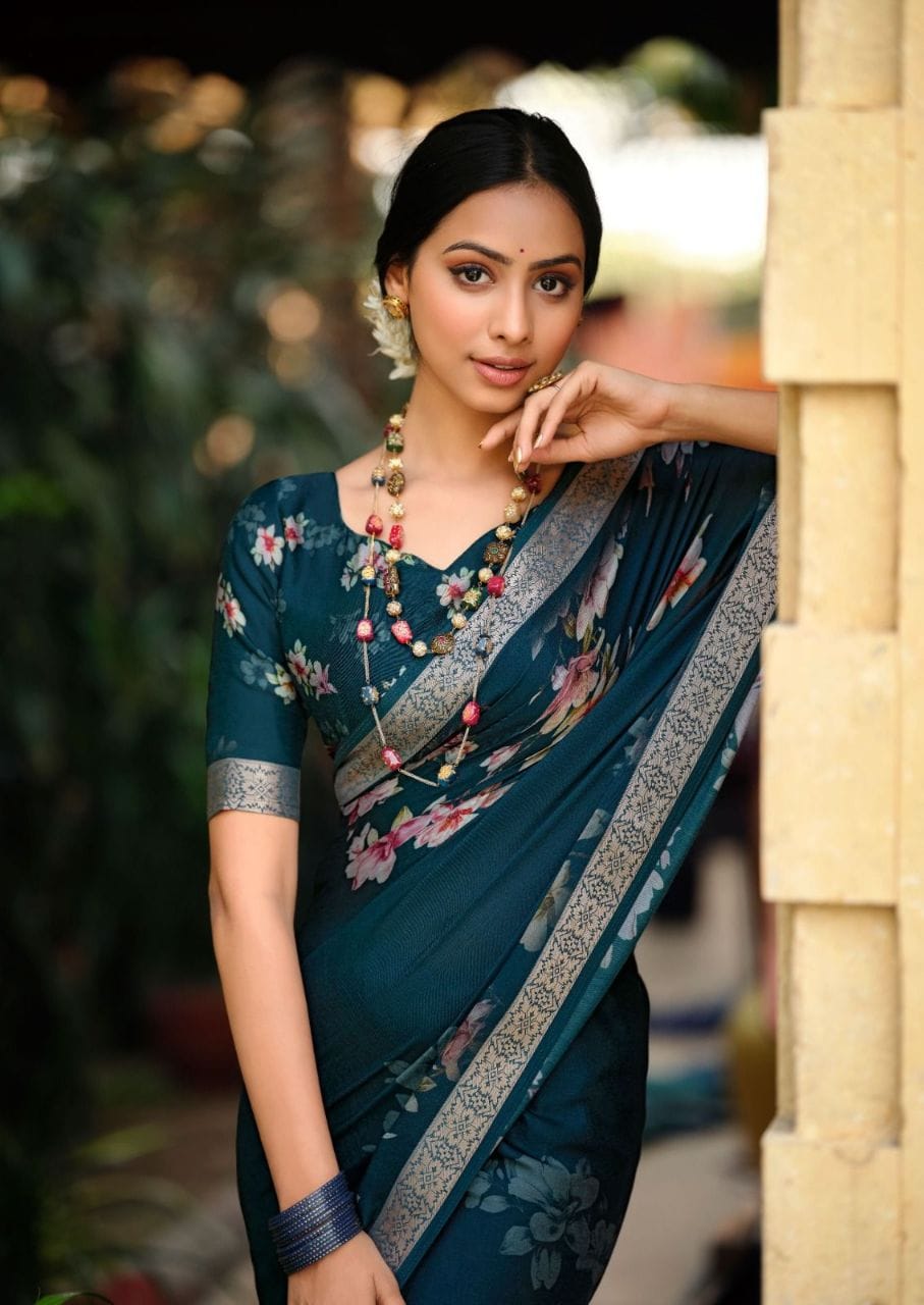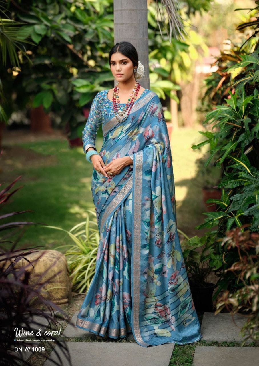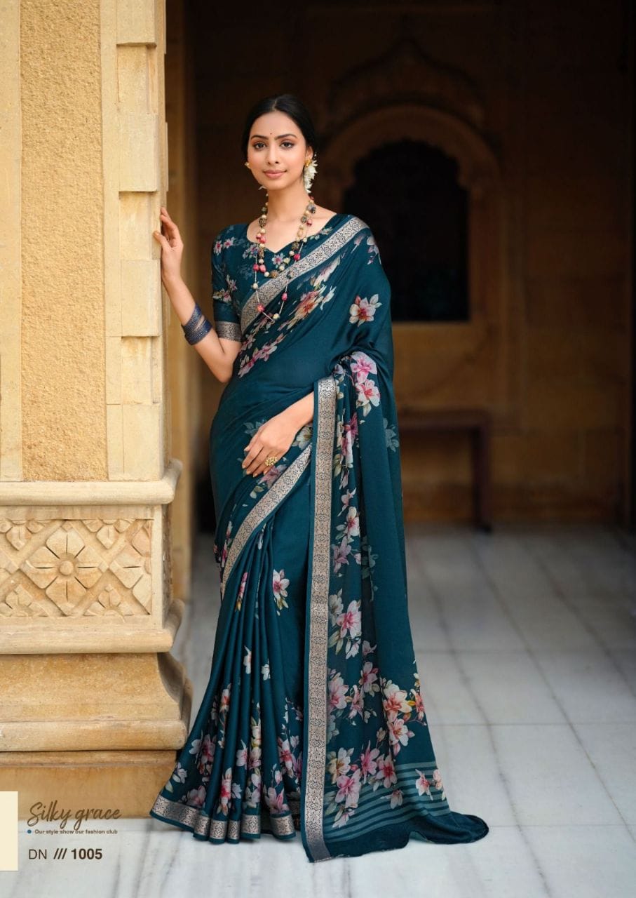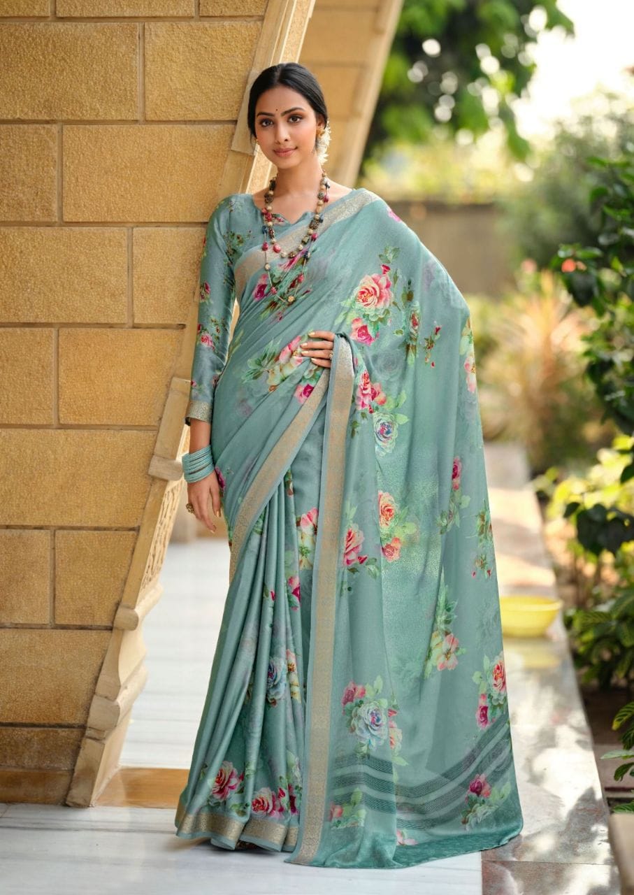 SKY BLUE COLOR PURE VISCOSE SATIN WITH DIGITAL PRINT SAREE