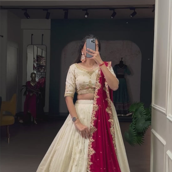 Sequins and Thread Embroidery With Vichitra Silk Lehenga