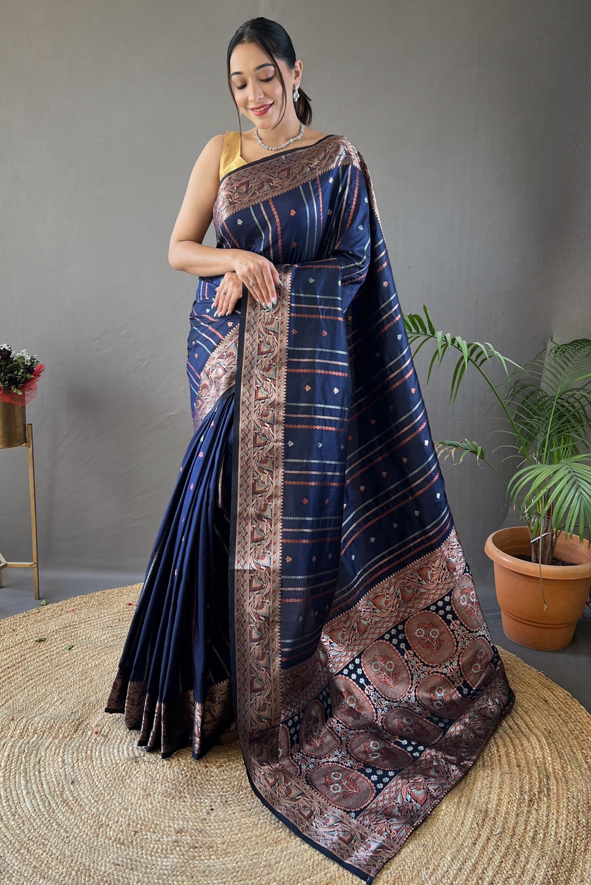 DARK BLUE COLOR SILVER- COPPER WEAVING WORK SAREE