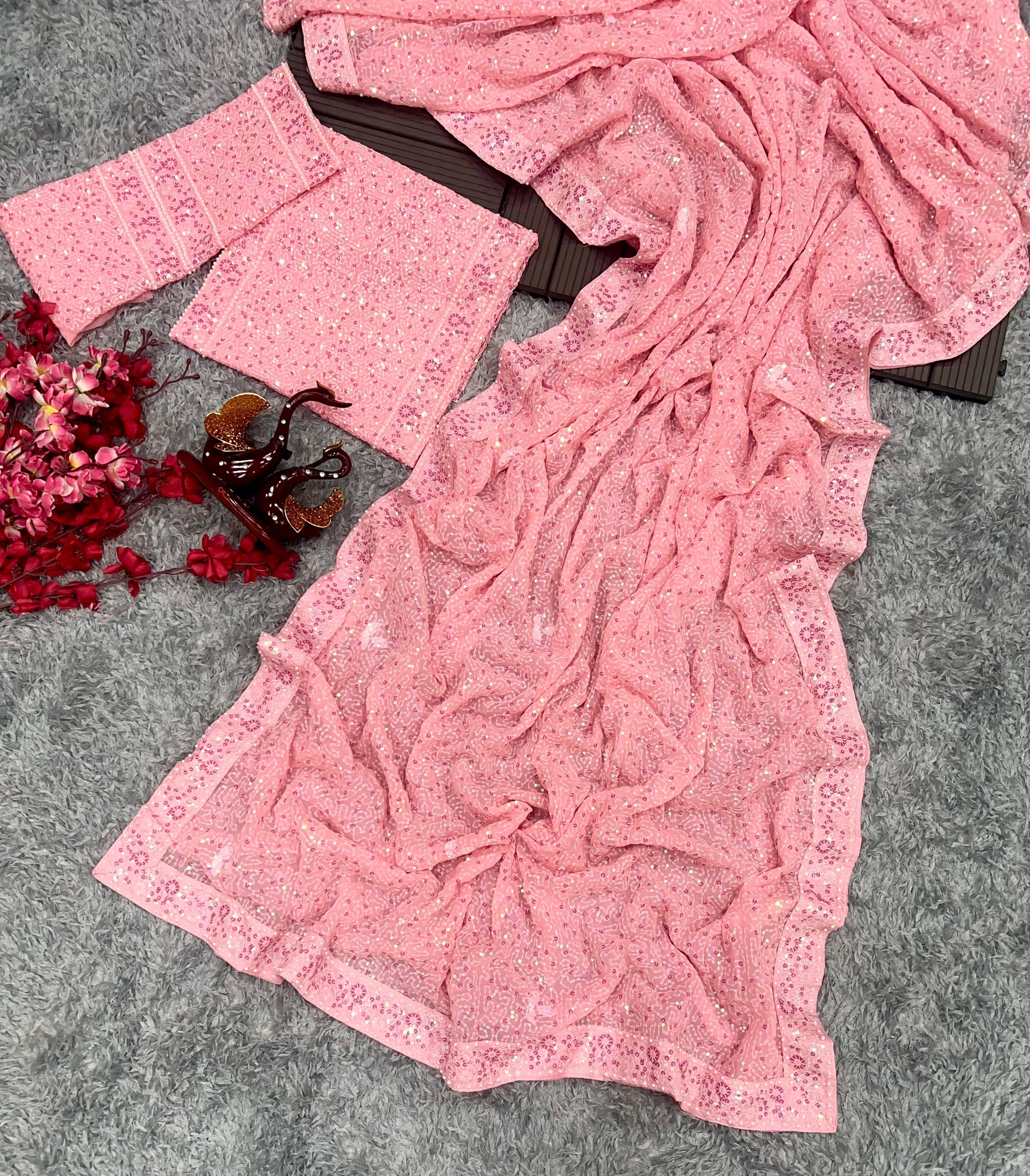 BABY PINK COLOR SOFT GEORGETTE STYLE SITARA SAREE
