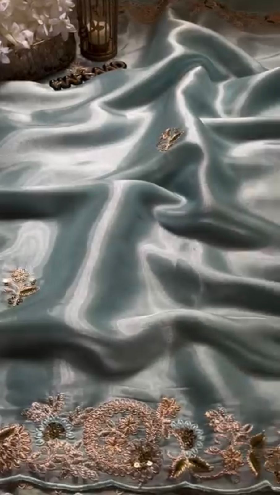 Sky Blue Color Heavy Zimmy Chu Saree