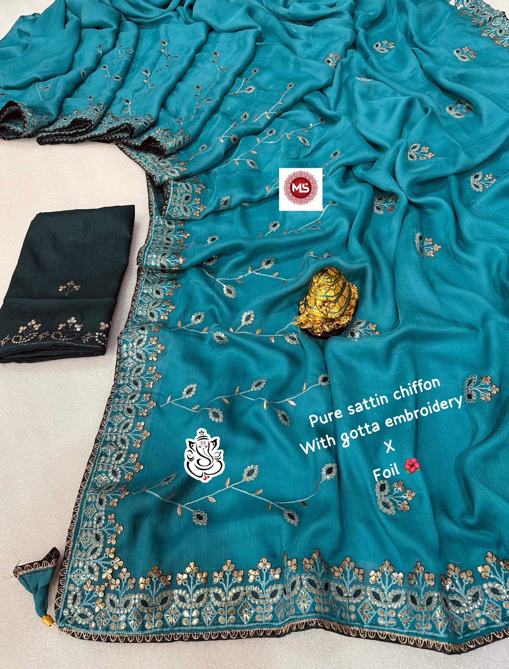 - Work: Gotapatti Zaal Work Throughout the Saree