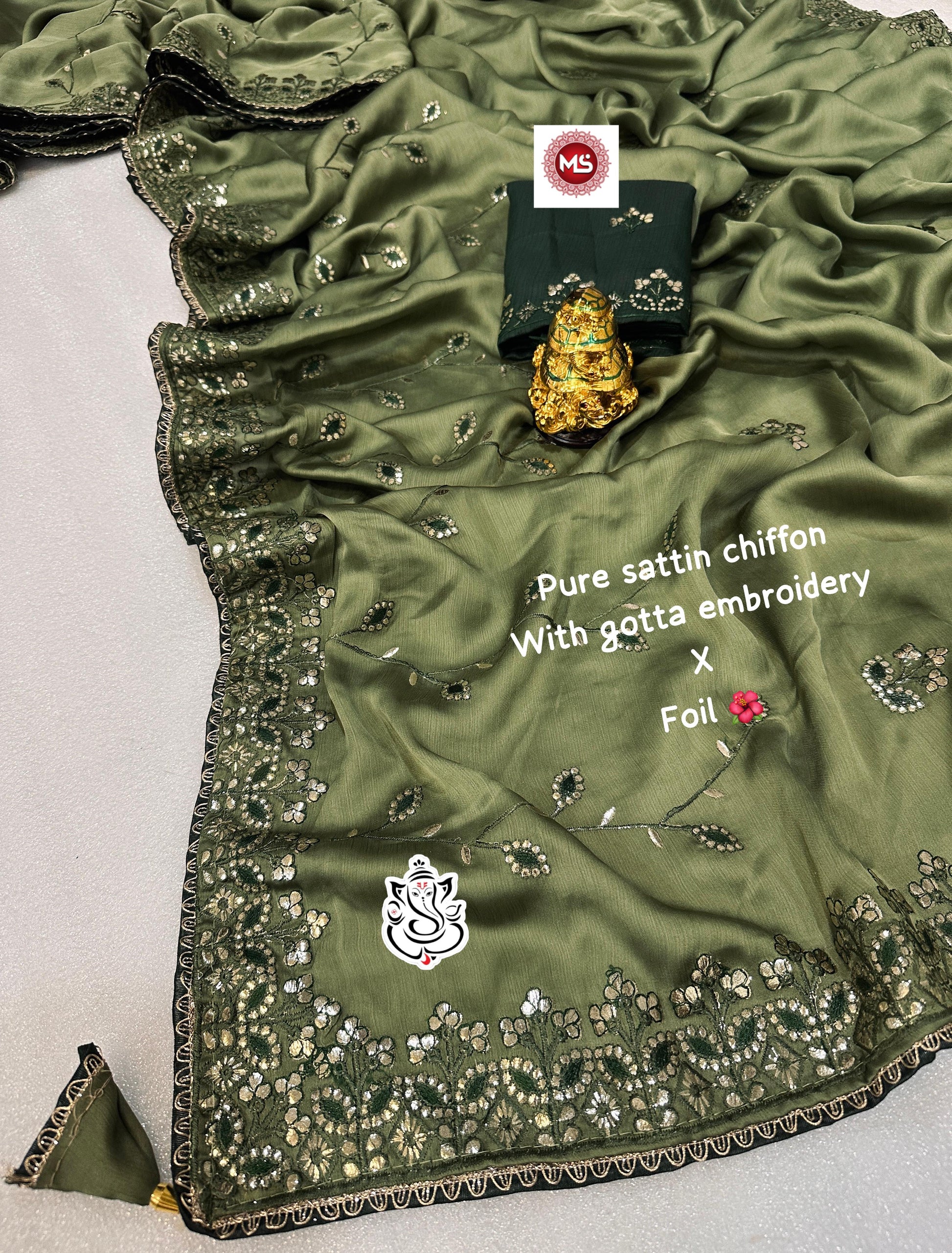- Pallu: Beautiful C Pallu with Foil Gotapatti Zaal Work