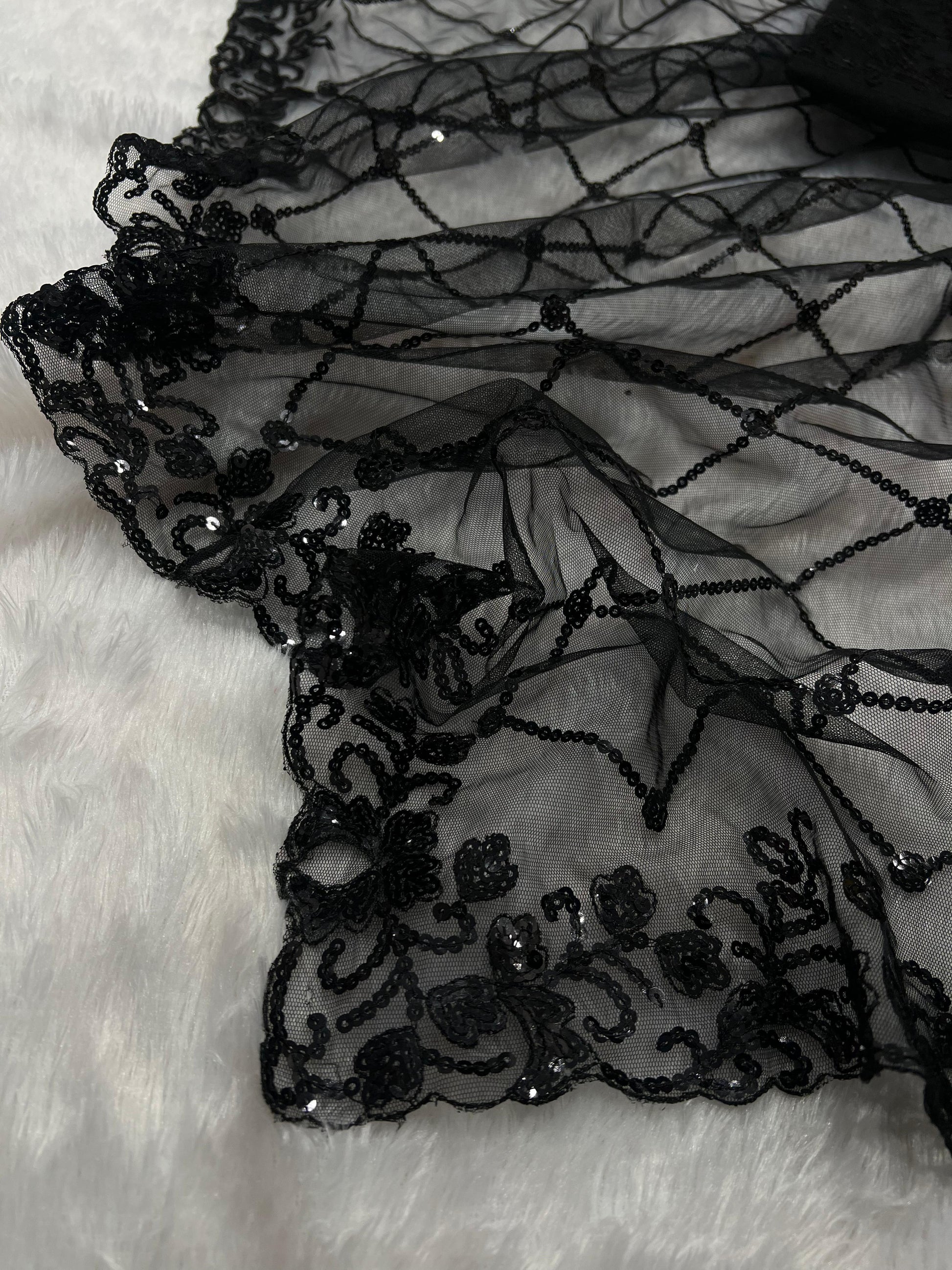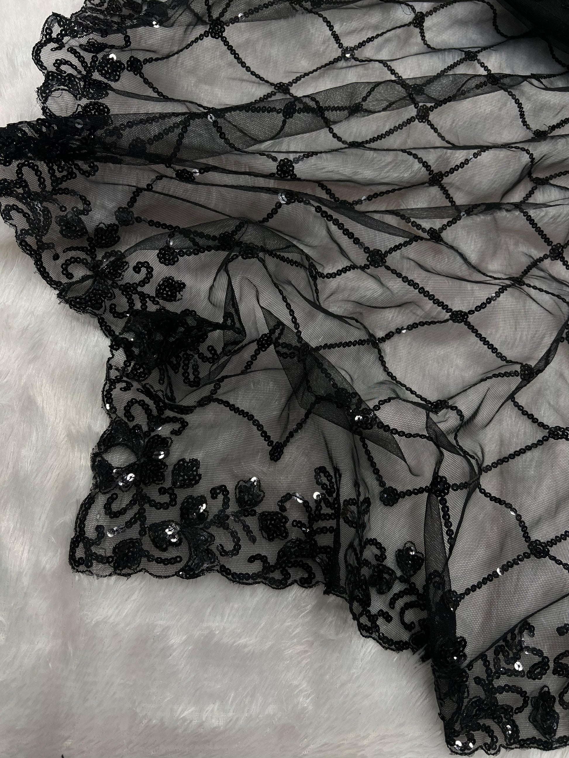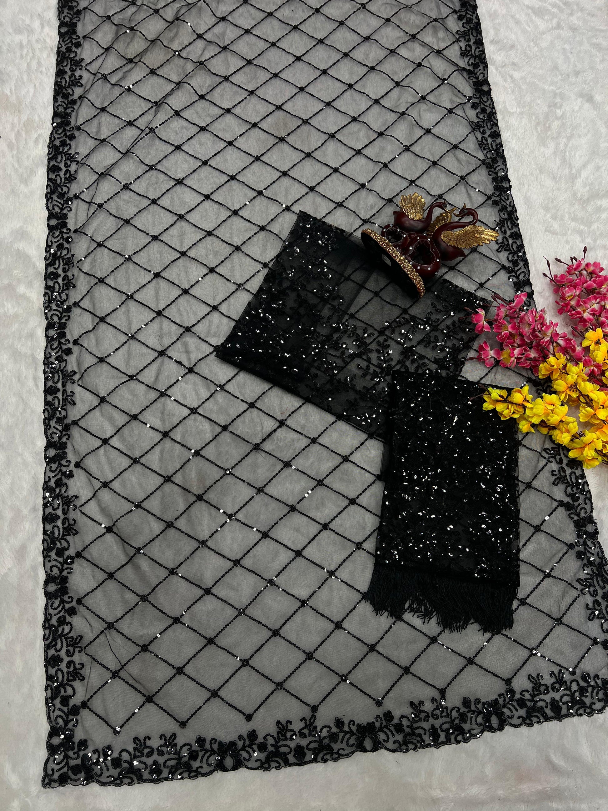 - Work: Beautiful Sequins Embroidery with C Pallu Work and Cutwork Border