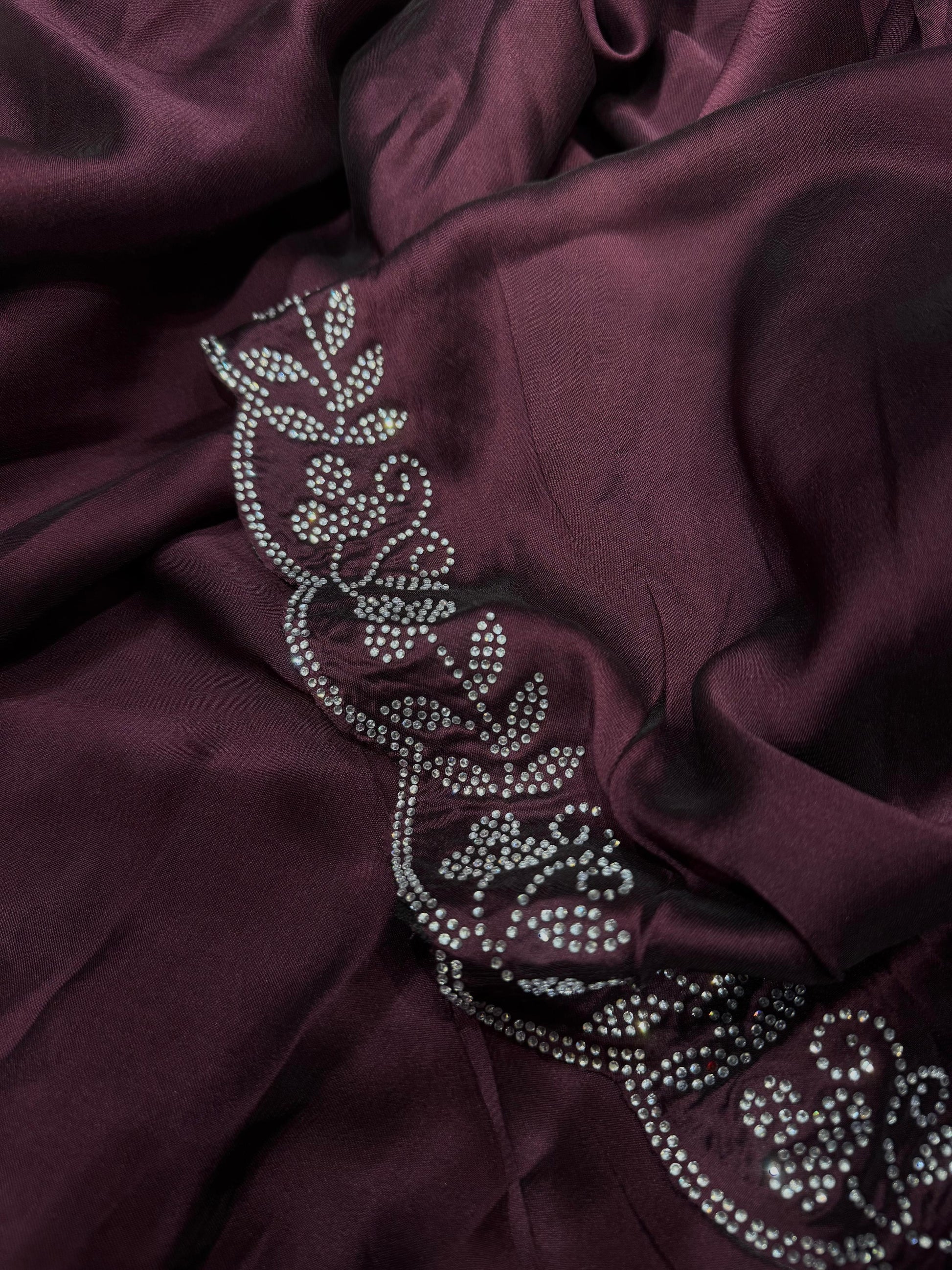 Wine Color Rangoli Silk With Beautiful Seroski Diamonds Saree