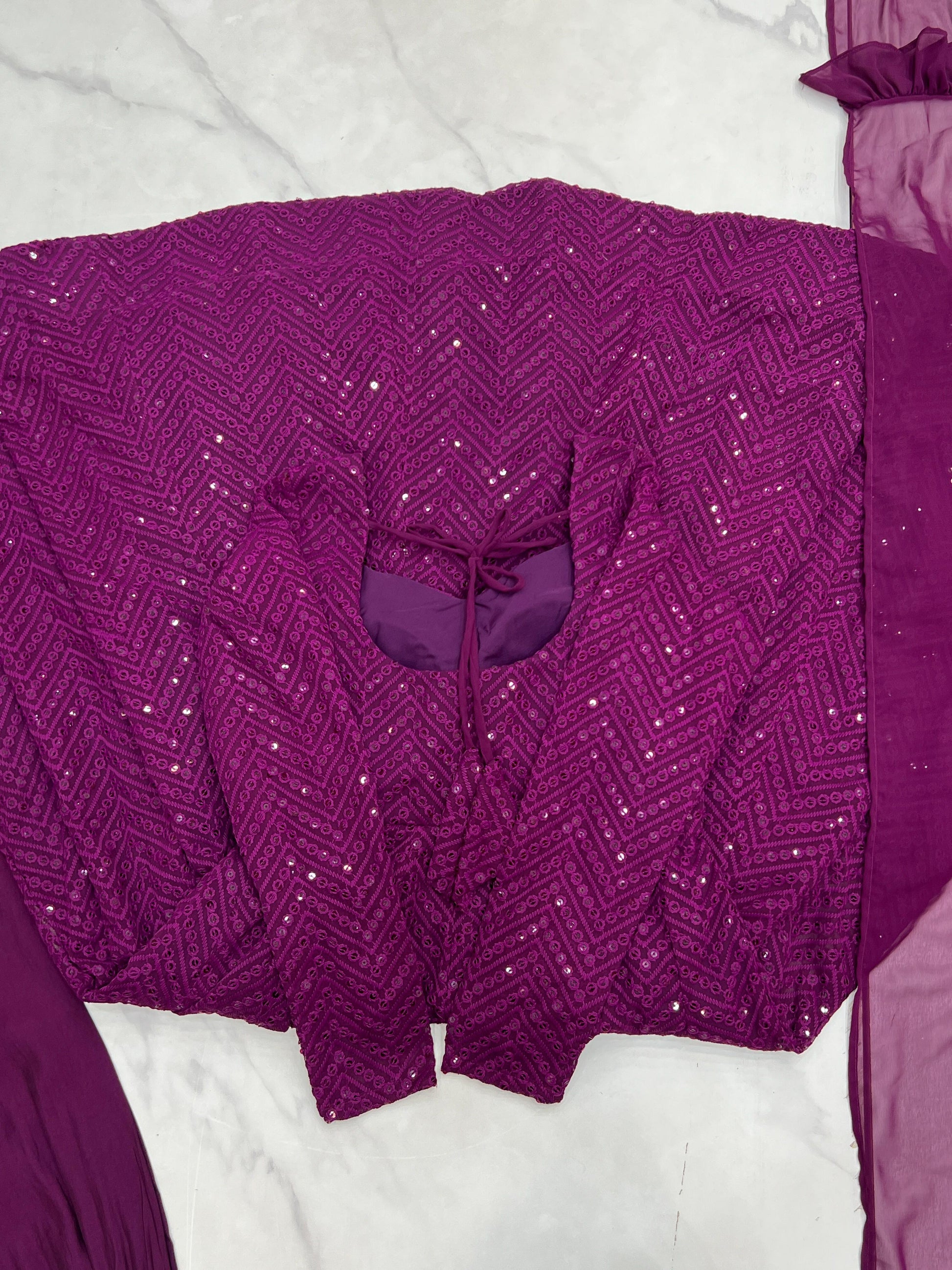 Wine Heavy Pure Soft Fox Georgette with Lucknowi Sequins Work 3pc Kurta Set