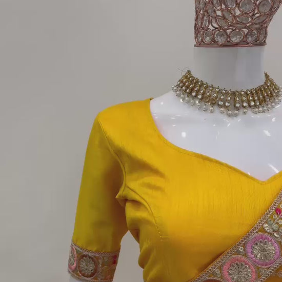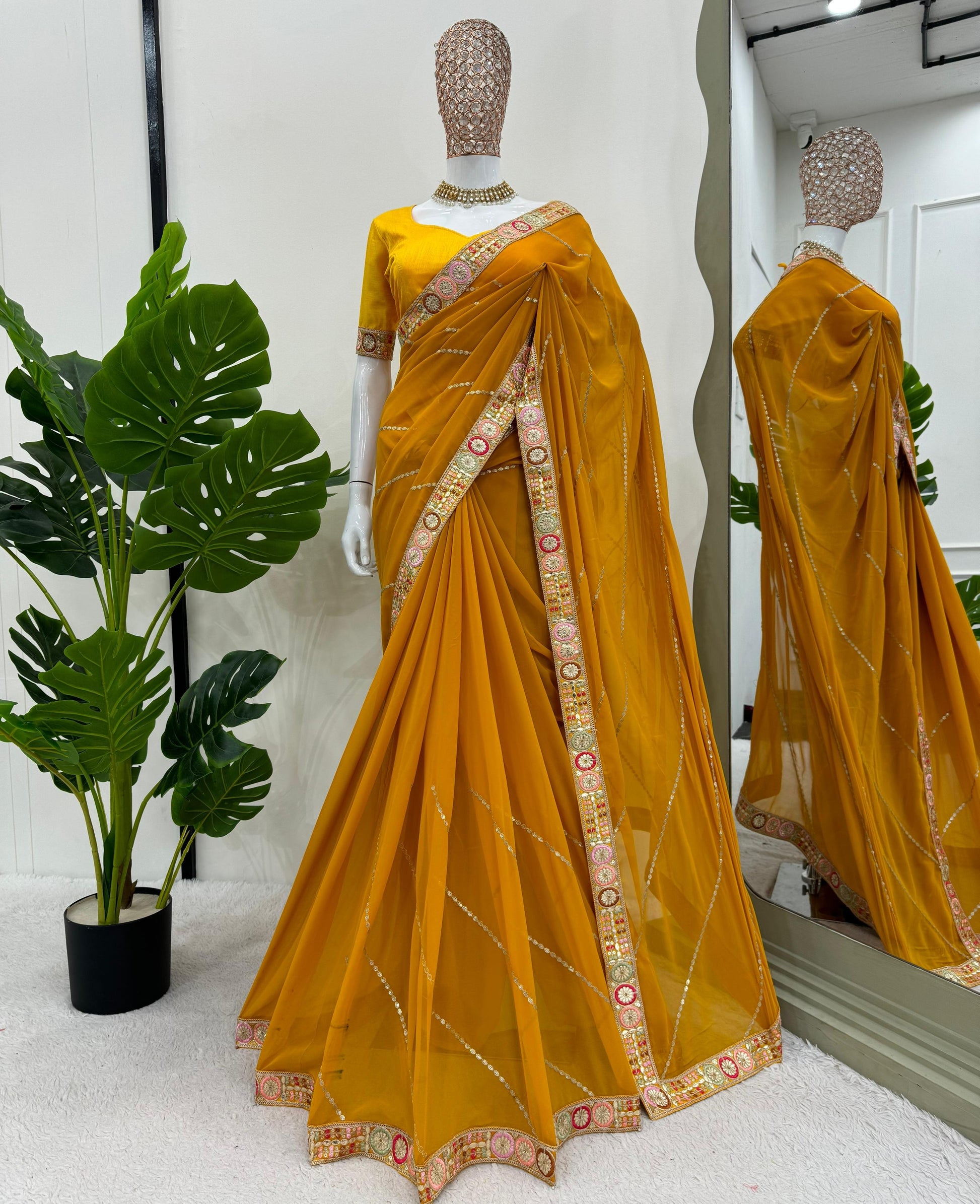 Yellow Faux Georgette With Coding Embroidery Work Saree